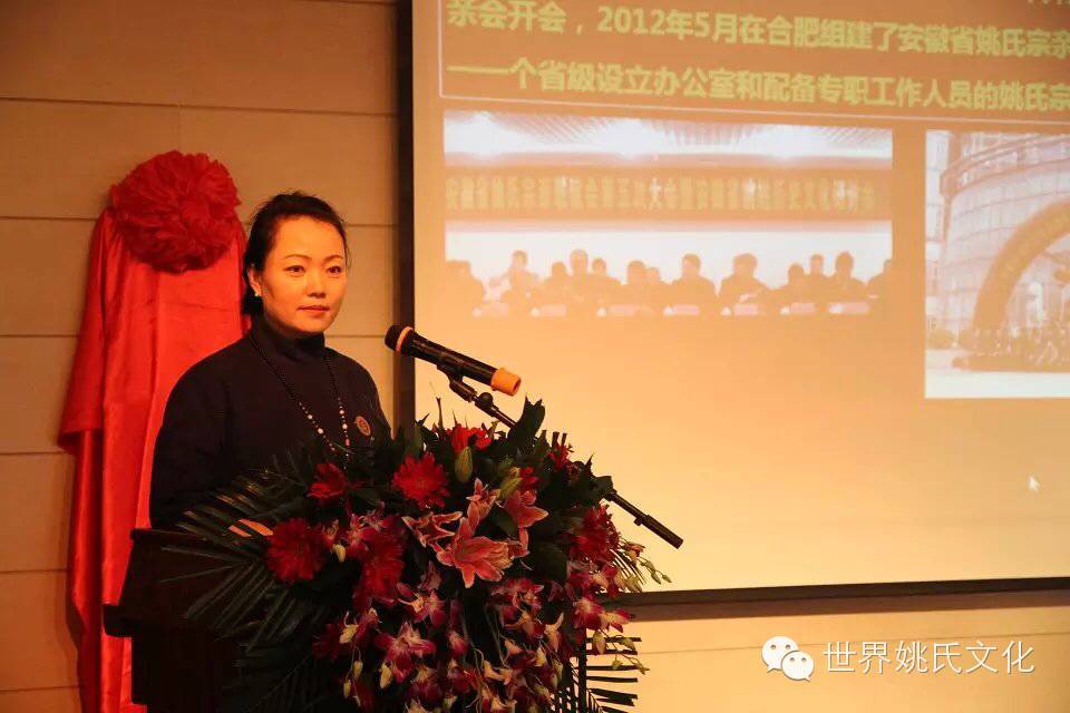 第二项:陕西省姓氏文化研究会会长李丽玮女士为陕西姚氏宗亲会揭牌大会致辞;