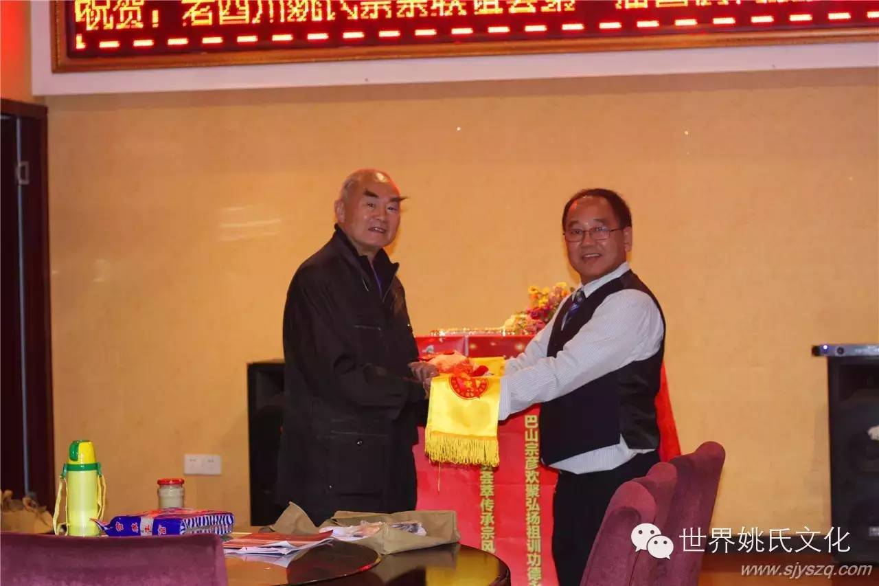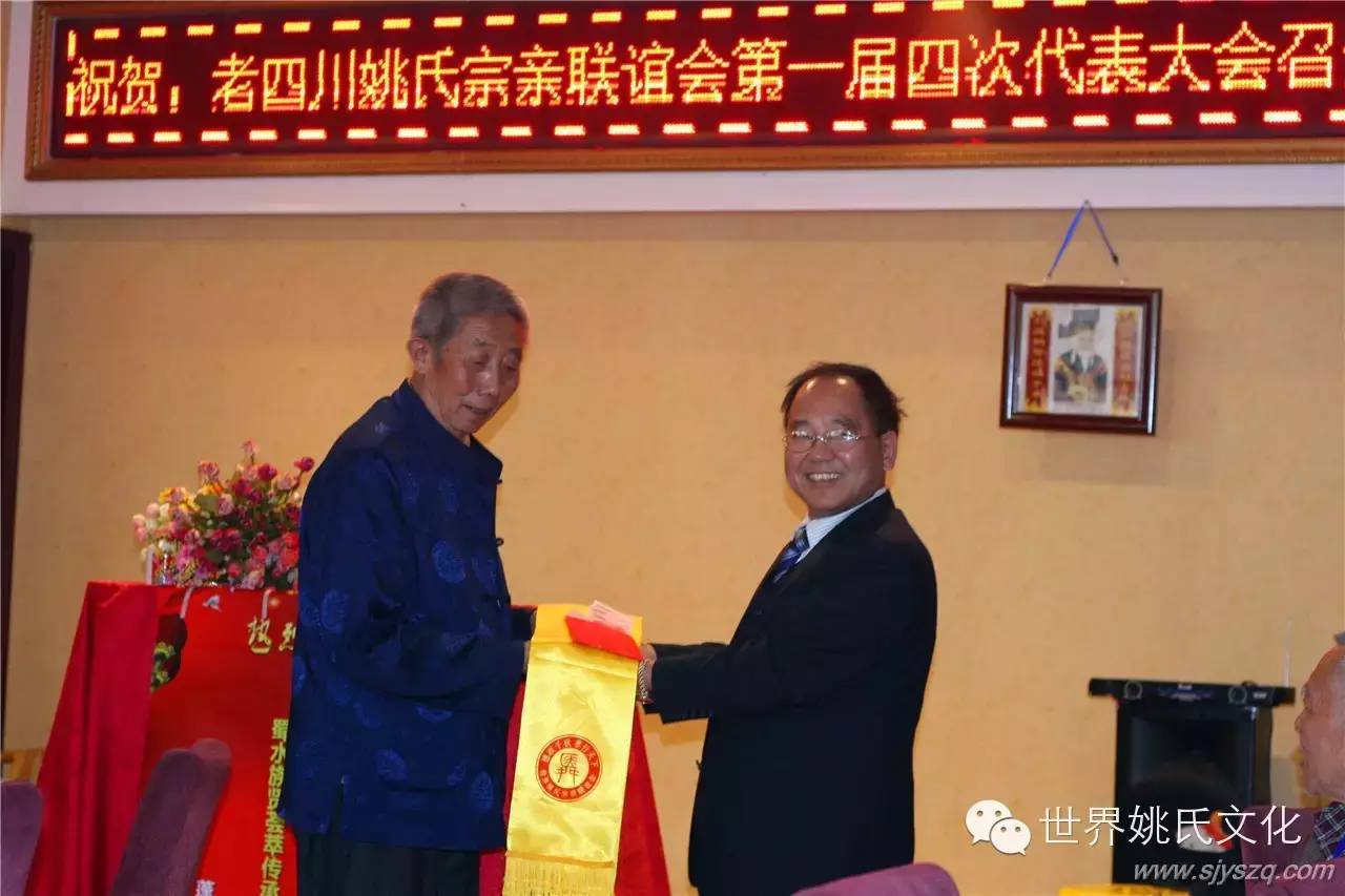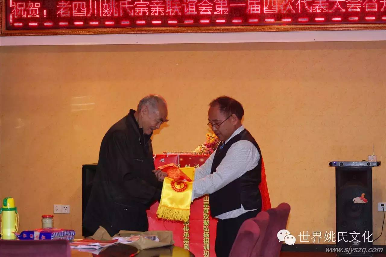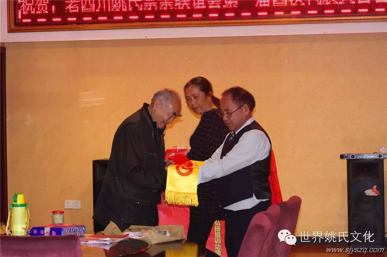 南充姚氏族老慰问金和纪念品由南充姚氏宗亲联谊会姚邦茂会长代为转交