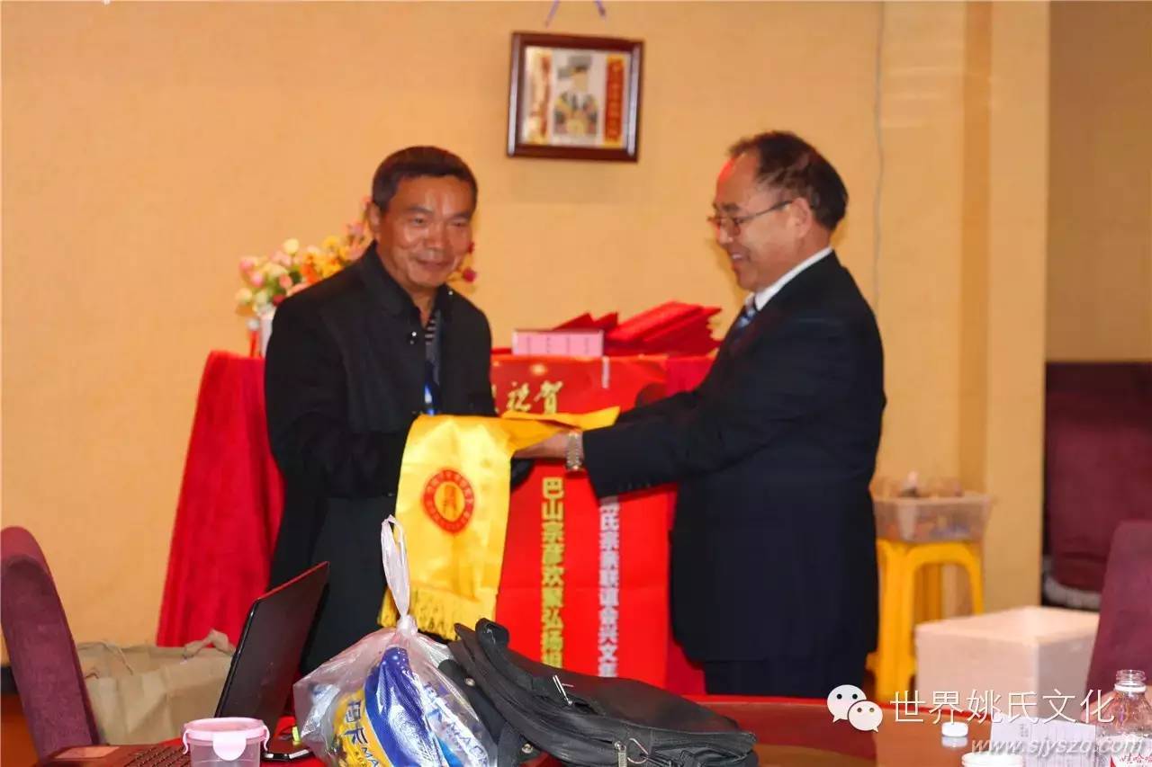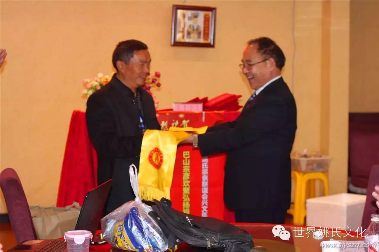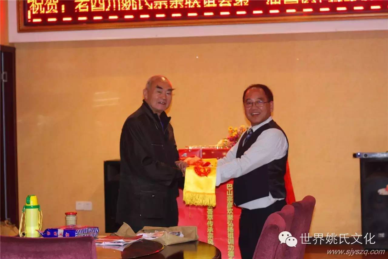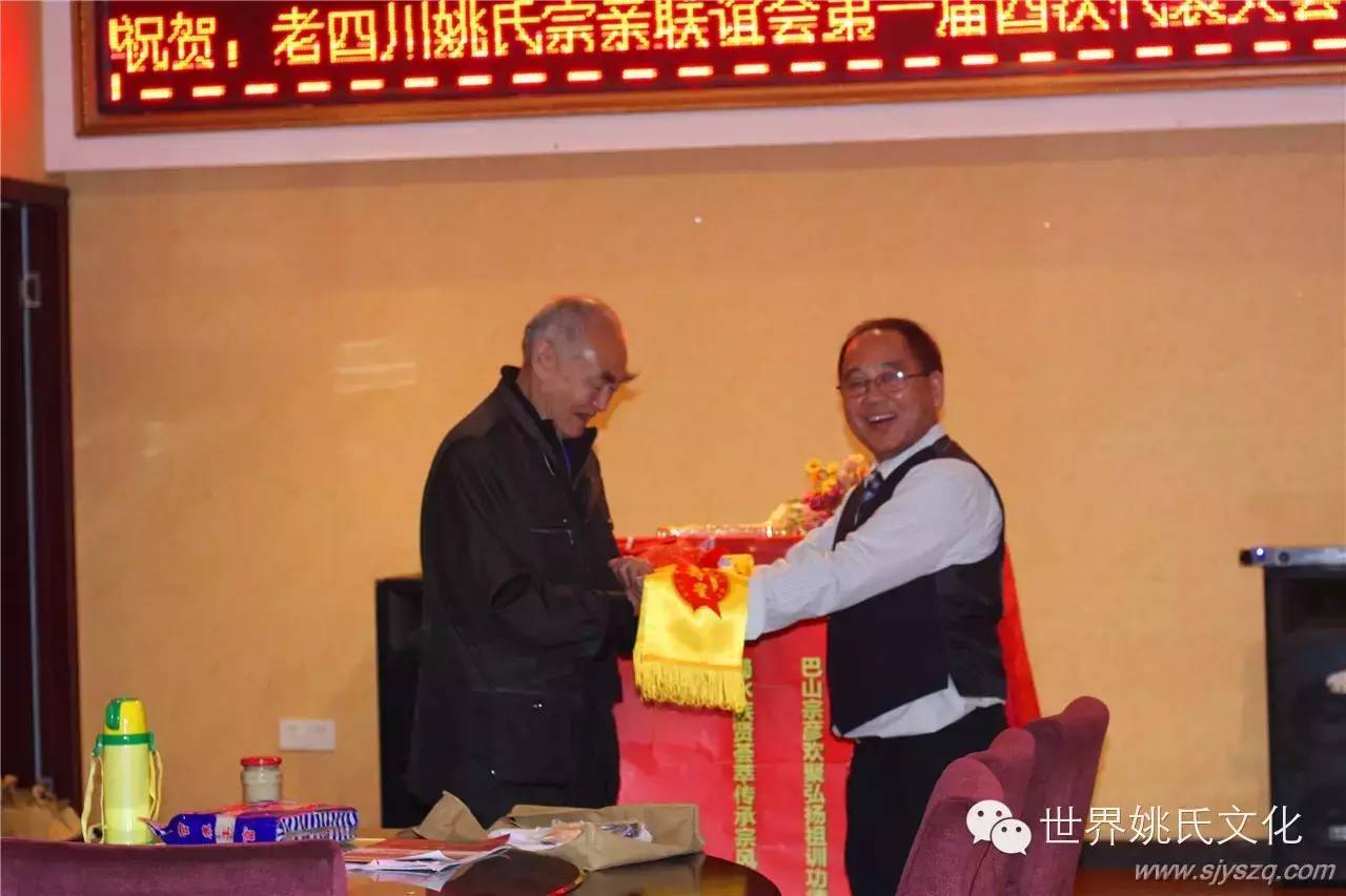 南充姚氏族老慰问金和纪念品由南充姚氏宗亲联谊会姚邦茂会长代为转交