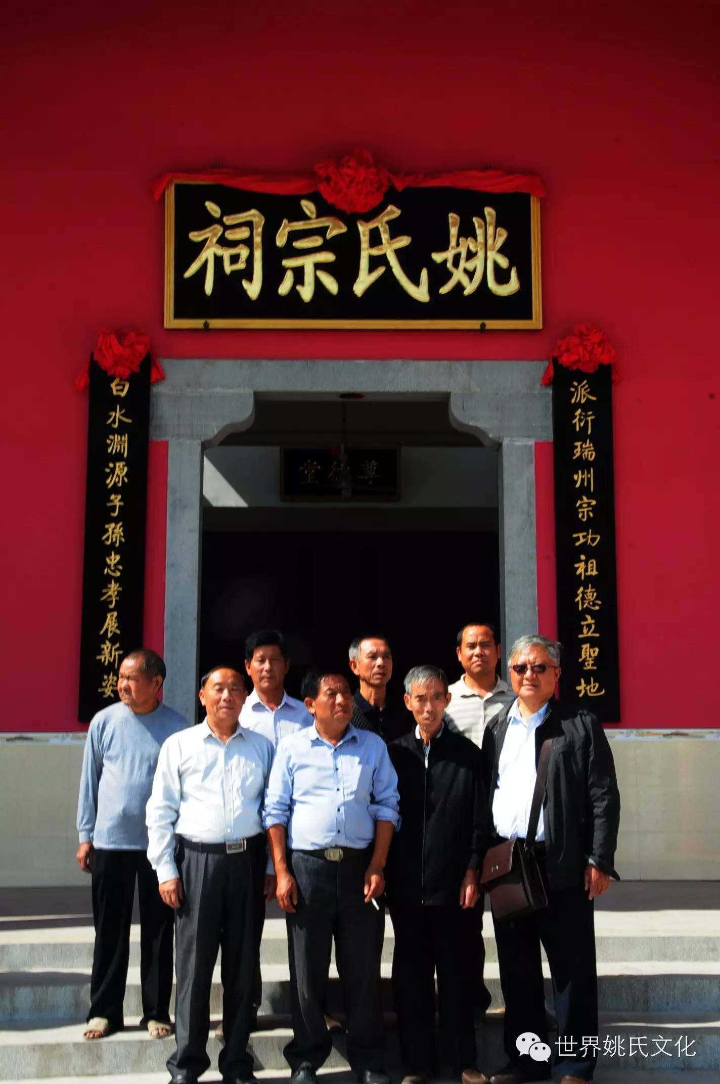 家门深情实可贵,久别千载仍思根。尽一片丹心,造福乡亲荫梓里;出几分微力,铸成功德裕后人。宗祠也是一个大家族繁荣兴旺的标志;宗祠高擎血缘亲情的旗帜,昭示家族精诚团结、和衷共济;宗祠凝聚祖先的辉煌,昭示后人继往开来。巍峨壮观的姚氏宗祠将写进姚氏传承族谱,追根求源,尊祖敬宗的丰功史册。我们尊祖敬宗,就是要继承先祖的遗志,缅怀先祖对社会文明进步的贡献,让先祖崇高的道德伦礼,超凡的脱俗流风,发扬光大;先祖卓越的贡献,高尚的美德,让后代子孙念念不忘,铭刻在心。你们为各地姚氏家族起了模范带头作用,对我们各地姚氏宗亲是一个极大的鼓舞和鞭策。