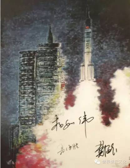 中国画《“神舟”英雄奏凯歌》 姚老师根据自己所看过的其他航天器的图片,加上自己的艺术想象,以酒泉卫星发射中心为背景,画面以蓝墨色为基调,在浩瀚深邃的夜空下,火箭发射塔显得更加宏伟。画面左边是一座巨大的发射塔架,塔架占去了画面的一半,与右边火箭相互呼应,动静对比。在芯二级凸面写上“中国航天”四个大字,同时在整流罩上画了五星红旗。姚老师知道,火箭采用两级半构型,由4个助推器、芯一级、芯二级、飞船整流罩、逃逸塔组成,运载火箭点火后离开发射台升空的瞬间才是画眼所在。动人心魂的情景出现了:运载卫星的巨型火箭,发出震耳欲聋的巨大轰鸣,耀眼的烈焰喷薄而出,如山呼,似海啸,像惊雷,拔地而起,一飞冲天,直刺苍穹! 2003年10月15日北京时间9时,杨利伟乘坐由长征二号F火箭运载的神舟五号飞船首次进入太空,象征着中国太空事业向前迈进一大步,开创了新的里程碑。当时姚老师在家里观看电视转播,边看边打电话给我,说“小袁,杨利伟成功进入了太空,他是真正的航天英雄。杨利伟上天,代表着中国的科研生产力向世界跨进了很大的一步,当中凝聚了无数中国人的智慧和心血!” 我说:“姚老师您成功啦,终于完成了一幅从古至今没有画过的作品!您的新闻触觉这么敏锐,能第一时间创作出一幅反映我国火箭飞上太空的大画。祝贺!祝贺!”姚老师说:“因为古代没有火箭,所以古人没有机会画火箭。我们身处在好时代,有机会看到火箭,这也充分体现出中国科技水平和航天工业水平已迈上一个新台阶、新高度,是国家实力显著增强的集中表现。” 后来姚老师将参展后的《“神舟”英雄奏凯歌》,赠送给中国北京航天指挥控制中心,该中心极为重视,专门安排杨利伟、费俊龙、聂海胜三位宇航员同姚老师见面,并回赠姚老师写有“神箭”的约3米高火箭模型。 姚老师坦言说:“笔墨当随时代,好的艺术精品一定是那些能够满足时代需要,反映社会诉求,并且遵循艺术规律、来源于生活的作品。只有这样的作品,才能真正得到群众的认可和喜爱,才会有艺术价值,得以广泛流传。虽然‘非典’不能到大自然写生,但依然可以通过看电视和阅读报纸来获取信息。作品接地气,就会充满时代气息。” |