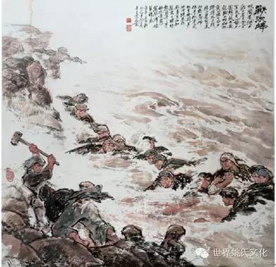 中国画《战洪峰》 《战洪峰》是姚老师1963年间创作的大型中国画,宽192厘米,长177厘米。作品描绘我国黄河上游一带发生洪灾险情,人民群众的财产乃至生命都受到了严重的威胁。就在万分危急的关头,几十万军民合力,夜以继日地一起并肩战洪水,斗恶浪,打响了气壮山河的保卫战。他们有的在岸上举起铁锤打桩,有的叠垒沙包配合固堤,有的身扛沉重沙包在泥水中来回穿梭。他们全然不顾生命安危,心中只有一个信念:“大堤,保住大堤!” 危急关头,他们一个个奋然跳入水中,用自己的血肉之躯,在汹涌澎湃的浑浊江水中筑起了一道人墙。那道人墙显得那样壮观,那样感人! 《战洪峰》这一作品,姚老师遒劲的笔法挥洒自如,人物生动传神,全画气势磅礴,极富节奏感。画面左上角的年青人奋不顾身跃入洪水中搏斗的动作,其实是姚老师的原型。姚老师在1954年曾亲身参加武汉抗洪抢险,并荣获二等功。作品真实地重现了当年抗洪拼搏精神,生动地体现了那个时代他们齐心合力,众志成城,坚守阵地,终于取得了胜利的辉煌岁月。此画曾参加当时北京美协主办的北京美术展览而获好评。 姚老师在《战洪峰》上题款记载了抗洪的感受:“欣闻黄河上游四省区九十万军民同心协力,团结一致,不畏艰险,不怕牺牲,夜以继日,奋力拼搏。终于战胜了建国以来的特大洪峰,保卫了亿万人民的生命财产。由此,联想起来亲身参加和亲眼目睹的抗洪斗争,壮观景象心潮澎湃,信笔作画。”难忘岁月尽在题记中。 纵观姚老师的人物画,不难看出他在漫长的艺术生涯中,砚田笔耕,孜孜以求,硕果累累。每个时期都有其代表作品问世: 60年代的作品《较量》,场面宏大,人物众多,姚老师对每一个人物的神情拿捏得各具神韵,无一重复。 70年代的作品《万方乐奏庆中华》,描写全国各族人民大团结的喜庆场面,为建国三十周年华诞而作。 80年代创作的中国画《欢乐的火把节》,属于人物速写和重彩舞蹈画,画面热情奔放、线条刚劲多变,标志着姚老师从速写逐步转向中国人物画创作。为纪念白求恩同志逝世五十周年而创作的《白求恩跃马百里救伤员》,则是一幅歌颂国际主义高尚情操的优秀作品。 90年代的《内罗毕市场》,取材于国外,速写非洲黑人,人物形象、动态捕捉得精准细腻,线条简洁生动。 2008年的《抗震救灾》,则描写了汶川地震抢险救人的动人场面,定格于历史的瞬间。 正是姚老师善于继承,勇于创新的精神,开拓出中国人物画的审美领域,极大地丰富了人物画的艺术语言。他的作品气韵生动,内容紧扣时代,技法中西合璧,饮誉中外,多为国内外博物馆和美术馆收藏。 难怪他的老师、中央美术学院教授叶浅予先生曾说:“姚治华的速写画得很生动,人物动态抓得好,处理场面和关系不错,集贸市场(陕西乾县)很丰富,大集市难处理,他处理不错。在生活速写中练基本功很重要。” |