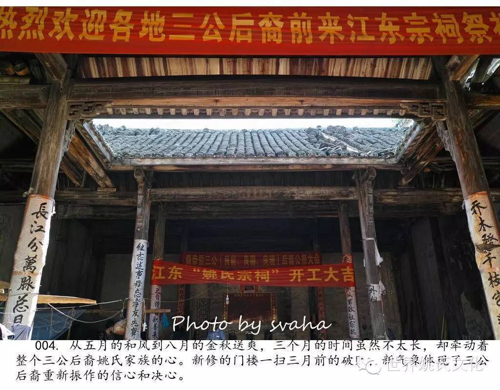 辰溪江东“姚氏宗祠”重建的茶堂、饭厅、牌楼、厢房工程进展顺利,定于公元2015年10月2日下午13:18分(农历乙未八月二十日未时)举行封顶仪式。各地“三公”后裔见证这神圣时刻。