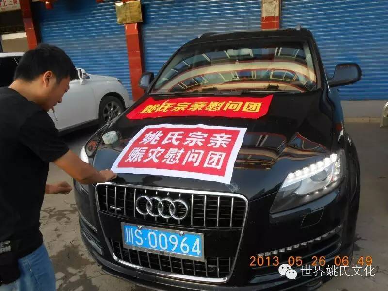 当日,受世界姚氏宗亲联合总会的委托,四川“姚氏救灾慰问团”在雅安市姚桥姚氏宗亲会带领下,专程赶往雨城区、芦山县、天全县地震灾区,探望和慰问了受灾严重的姚氏宗亲,为他们送去了爱心善款。领到爱心善款大家纷纷感谢海内外姚氏宗亲的关爱。