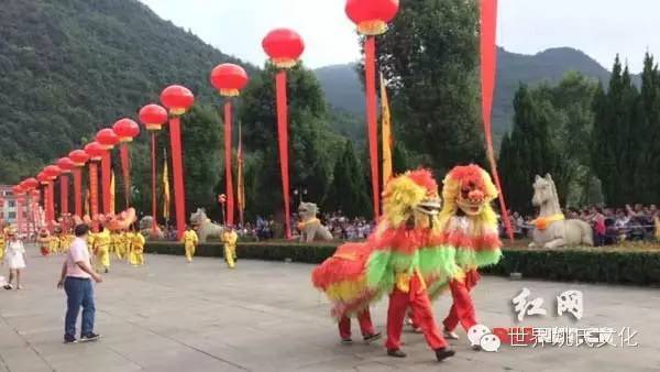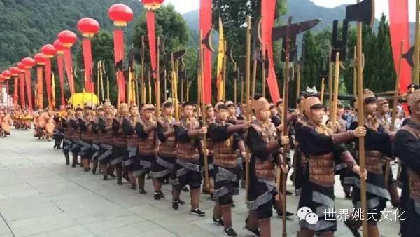 2015湖南省公祭舜帝大典:8时35分,三声礼炮响彻云霄,以龙狮队领头的开道队伍威风凛凛进入神道。