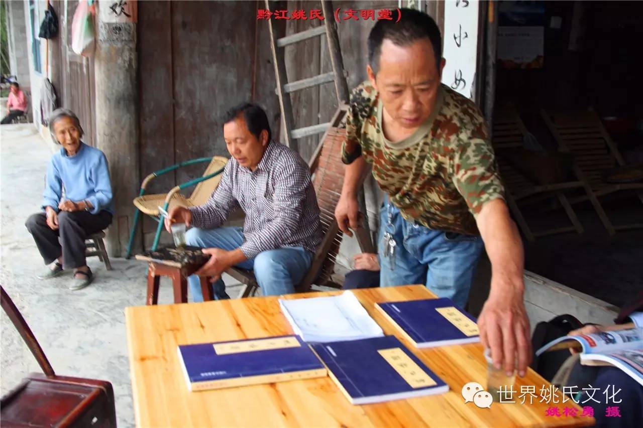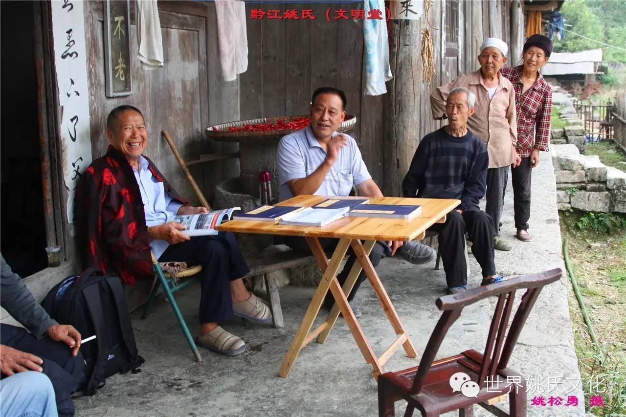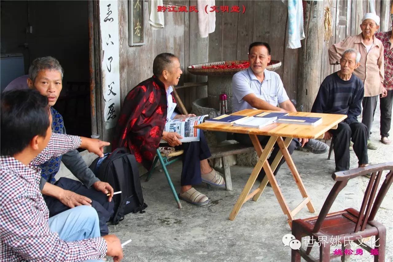 这里有两个村全部姓姚,会西村就有1300余人员姓姚,还有解放村也是全都姓姚,大家一边饮茶、一边交谈,不知不觉到中午,和大家合影留念。会西村村长兼支部书记姚谷因他很忙,没有在坐,正巧返回石会镇的路上,两车相会见到他了,于是下车在路边一个小卖部交谈了一会,听村长介绍,这里姚姓修谱在册的有近万人,正包括咸丰和其它地方,从古到今,都很穷,因是深山老林之中,改革开放后有70%的人外出打工,温饱不成问题了,现在都盖起了新房,奔小康生活,没有什么工业和矿产,姚家没有大企业家和土豪。从2005年版家谱来看就知道捐款人的金额,庆幸的是书本的印刷费都是刮油来的,没花印刷费,黔江最大的官,从古到今就是姚文怀,他是解放军的少将(另附资料)下午乘班车回重庆。