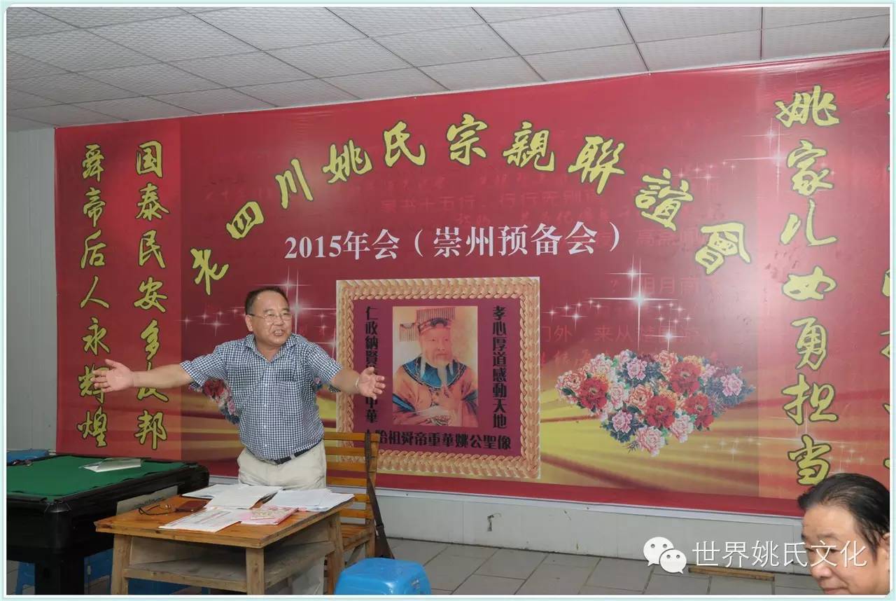 值此,我谨代表老四川姚氏宗亲对2015年崇州预备会的成功举办表示最热烈的祝贺!向前来参会的老四川姚氏宗亲联谊会各地姚氏宗亲代表表示最诚挚的感谢!并通过你们,转达对当地姚氏宗亲最真诚的问候!