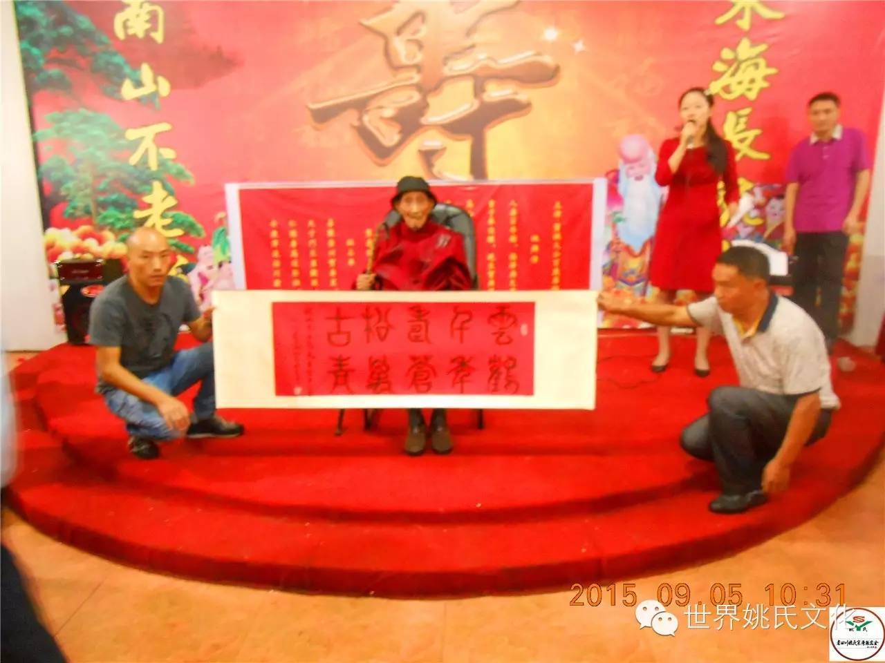 2015年9月5日是成都市崇州姚庆云(姚永承之父)100岁的生日。姚永承为父举办了百寿宴,老四川姚氏宗亲会的会长、理事和来自13个地市县的姚氏宗亲代表80多人参加了老人的祝寿活动!