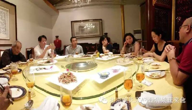 2014年7月6日,北京姚氏宗亲联谊会,在副会长姚文东主持下,在汾酒会所盛情接待了山西美协名誉主席,85岁高龄的国家级大师姚天沐老先生以及风雨同舟精心呵护与陪伴的夫人,孝顺有加,关心备至的儿子儿媳,活泼、可爱、顽皮的长孙一行5人。参加作陪的宗亲有,姚峻,姚新闻、姚冰、姚克俭等相关人士。
