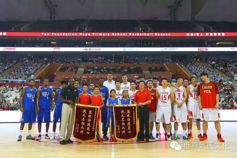 人民网上海8月23日电 8月21日,首度在沪举行的姚基金慈善赛在上海东方体育中心开球。美国职业篮球耐克星锐队与中国男篮明星队带领16名姚基金希望小学篮球季的少年球员们联手为现场近7,000名观众了一场精彩的篮球比赛。