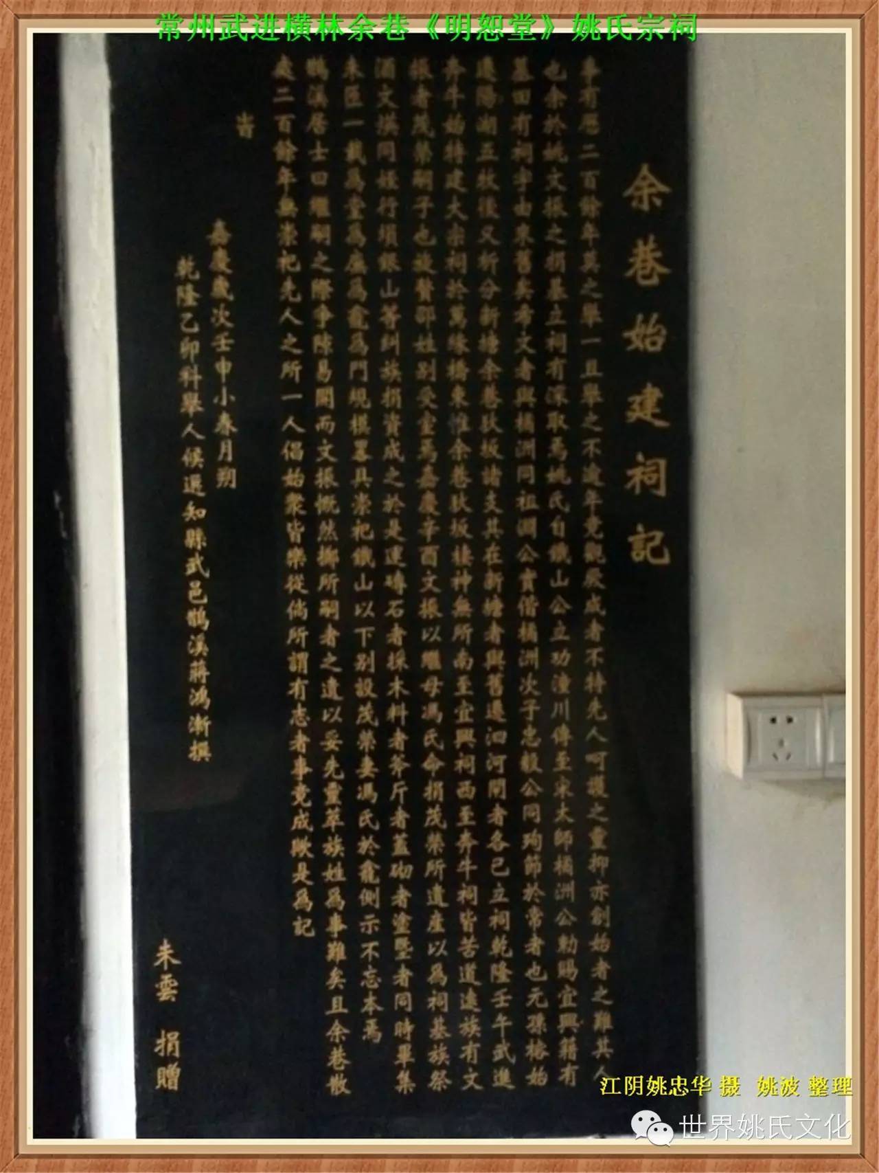 在横林余巷,世居于此的明恕堂姚氏族人,他们是抗元英雄姚訔的后代,自明洪武三年迁居武进余巷,至今已有630多年了。