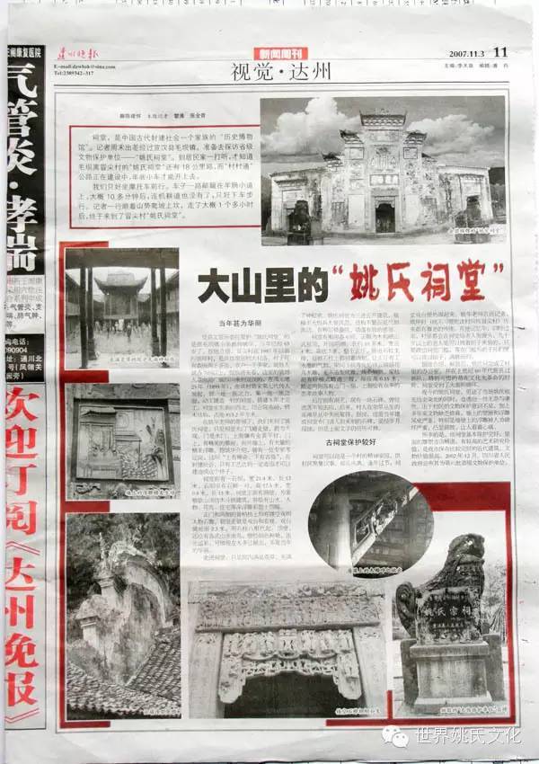 记者了解到,姚氏祠堂雕塑造诣精湛,具有艺术研究价值,是我市保存比较完好的近代建筑,文物价值高。早在2002年12月,就被四川省人民政府公布其为第六批省级文物保护单位。采访时,记者也了解到当地政府对打造“姚氏宗祠”非常重视,不仅有专人进行保护,还在周围新修建了公厕、修好了道路,为将来有更多的人关注这座建筑提供良好的条件。