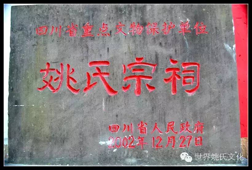 据资料记载,清光绪25年(1899年),由该村姚家第七代传人发起,倾一地一族之力,集一地一族之智,动工建造姚氏宗祠,修建5年才完工。祠堂坐东南向西北,四合院布局,砖木结构,占地813平方米,由牌坊、戏楼、内坝、正殿、左右厢房五大部分组成。