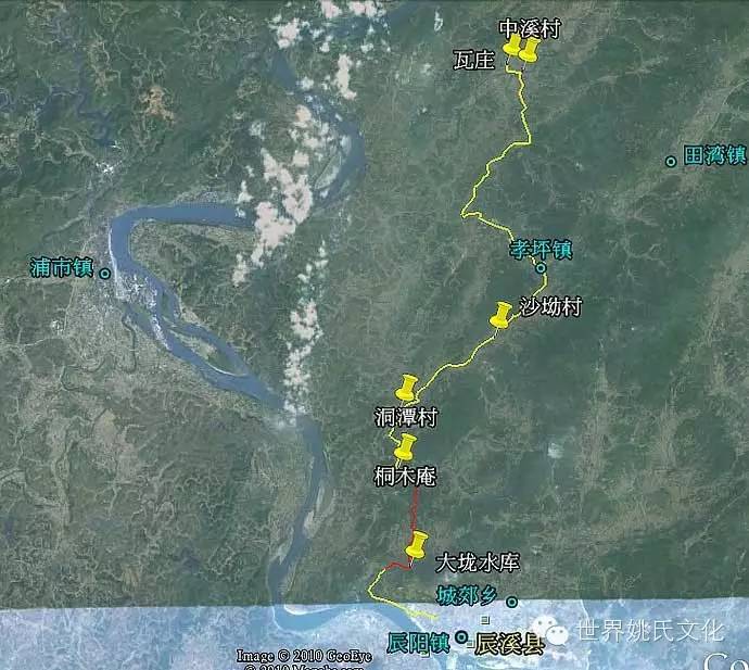 《姚氏族谱》载:“(明)永樂十四年(公元1416年),奉旨徴各處殷實民戶,財力俱備者,適辰州安挿。姚荣裔孫,良能、良德、良珊兄弟三人,由江西南昌府豐城縣濫泥灣,應詔來辰。良能居沅陵四都羅衣溪千龍坪。能子宗岳迁浦市江東沙堆角”。良德后迁沅陵一都灰窑长田。良珊再迁沅州岩子坪,珊公死后“归葬沅陵”。“沅陵四都羅衣溪千龍坪”就是现在的湖南省辰溪县板桥乡中溪村,原来属于沅陵管辖。“羅衣溪”就是现在的“落衣溪”。