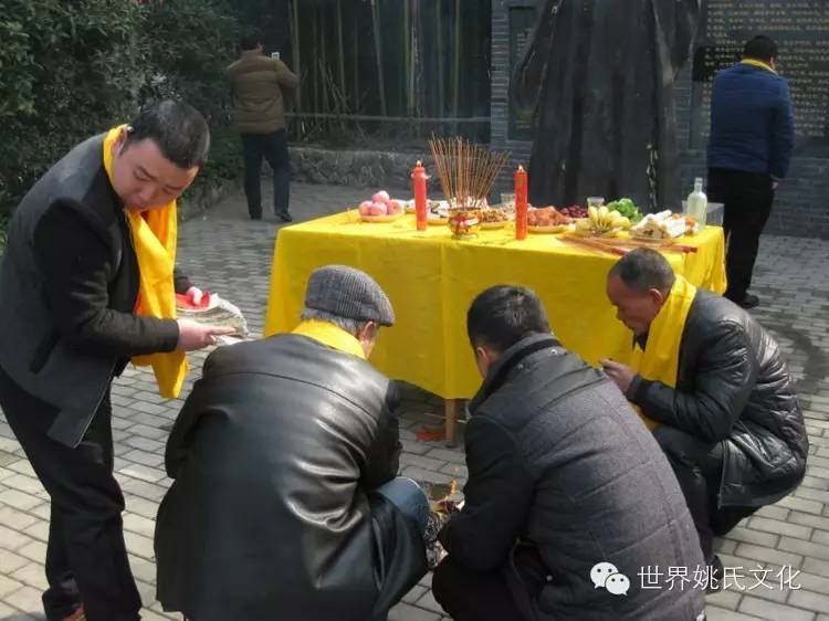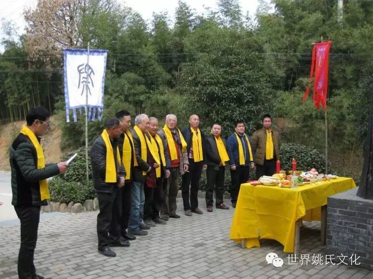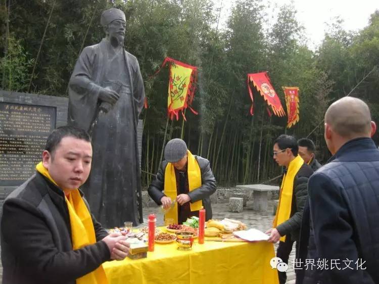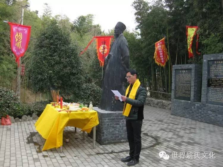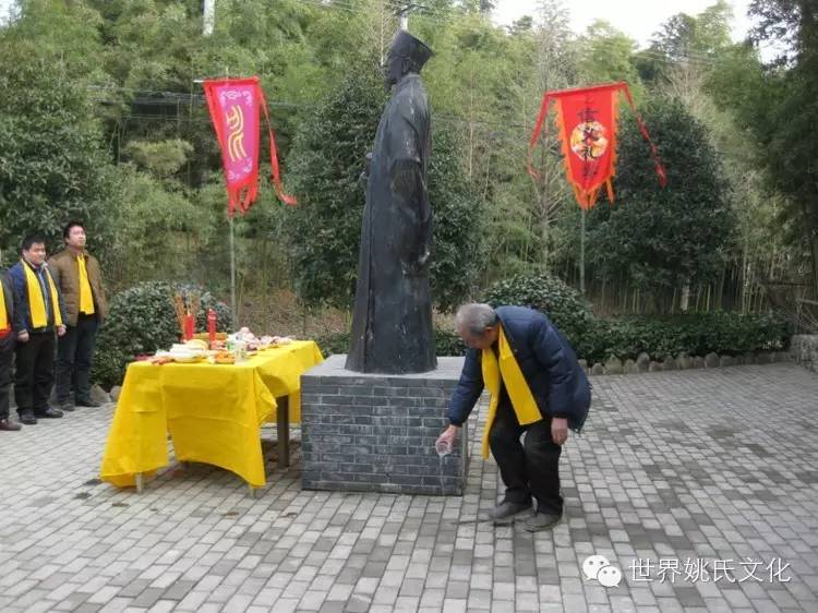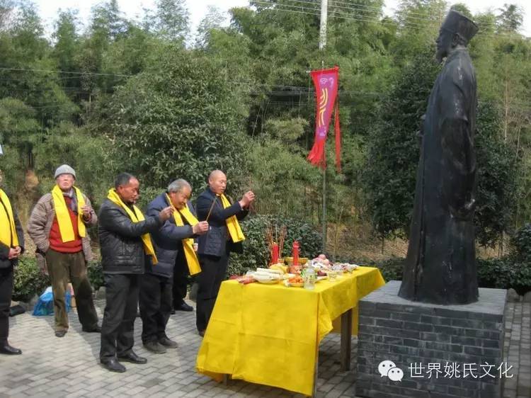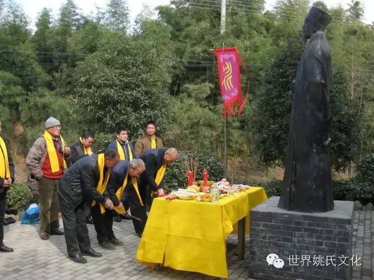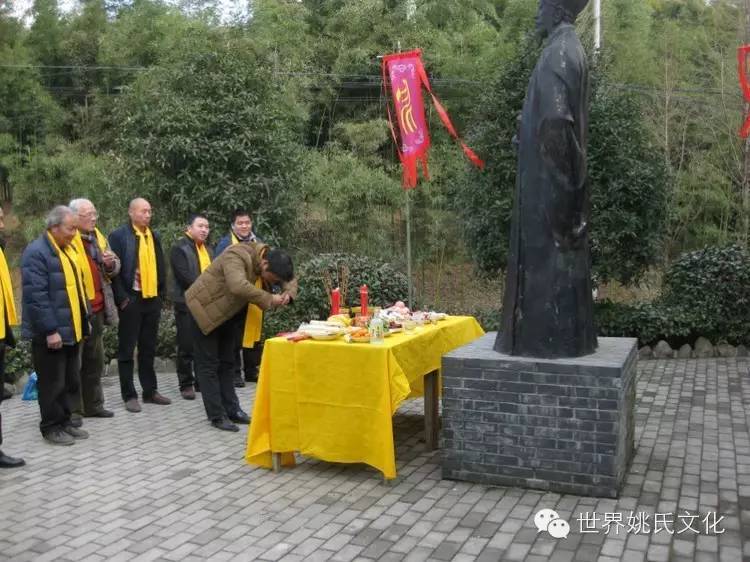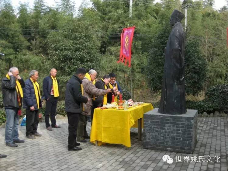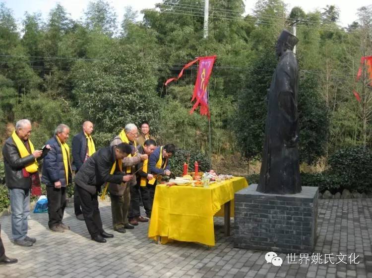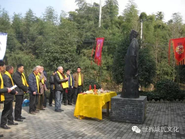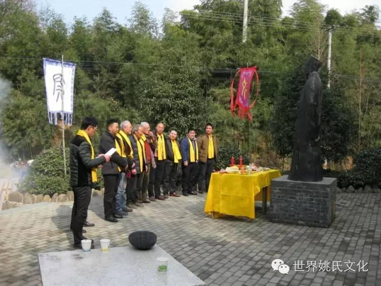 维公元二零一五年二月八日,华夏迎春,万物将新,一派祥和。江南大地,阳光明媚,梅花芬芳。在这祭祀活动的吉日,来自上海、湖州、安吉、吴兴、郭肇村姚里、武康的宗亲代表,怀着崇敬的心情,肃立于郭肇村姚里姚平公像前,敬献鲜果佳肴,高香清酒,致祭于吴兴姚氏始祖--姚平公,缅怀始祖功德曰: