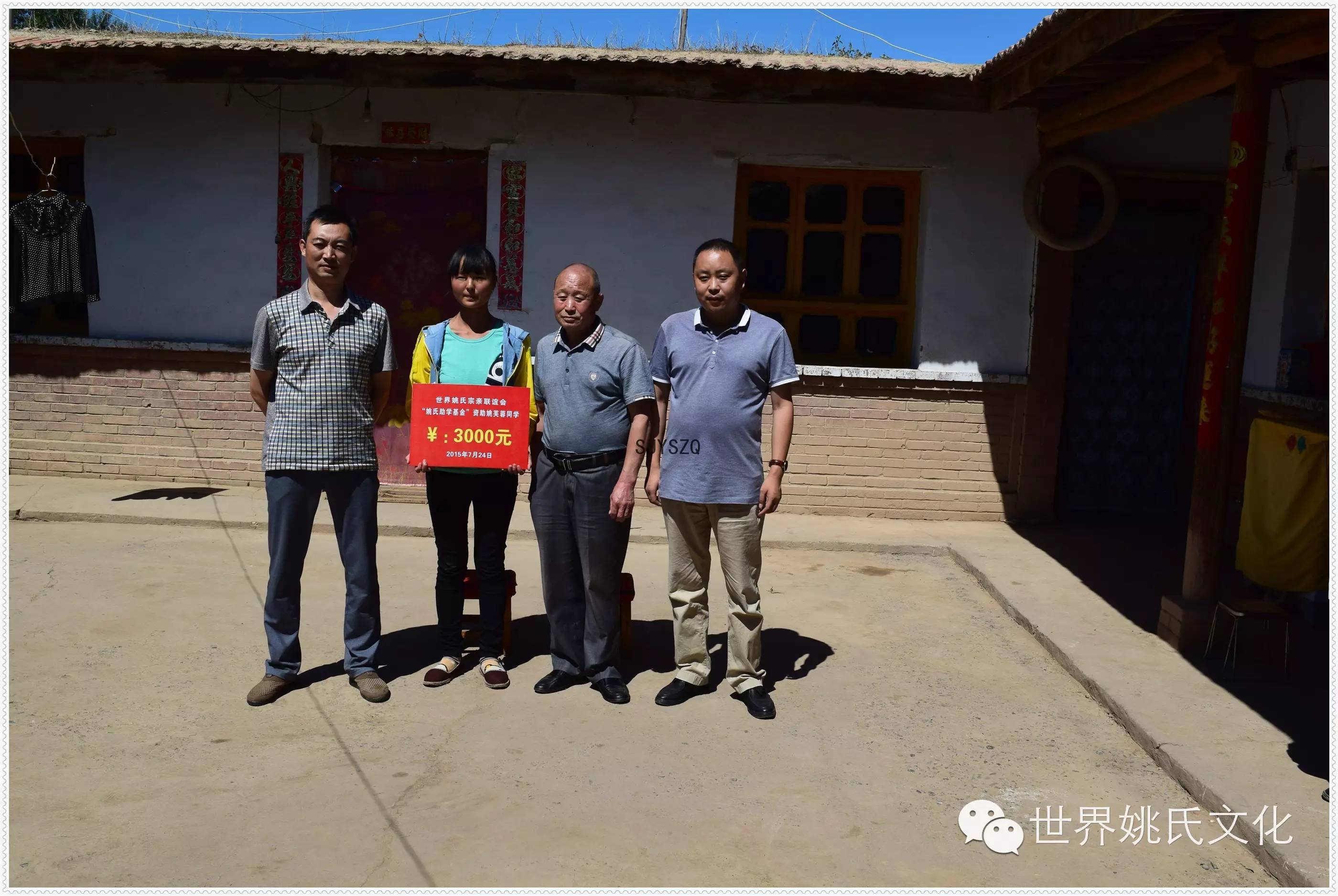 2015年7月21日在看到兰州晨报"圆梦陕师大,贫困女孩愿让出资助名额"的帖子,讲述甘肃省张掖市民乐被领养女孩考上免费生,但爷爷奶奶难筹大学生活费一事,甘肃汉之韵文化传媒公司董事长姚海涛宗亲在群里回复姚波,愿意资助这个孩子,并配合2015年世界姚氏宗亲联谊会捐资助学计划,将甘肃的名额给她!