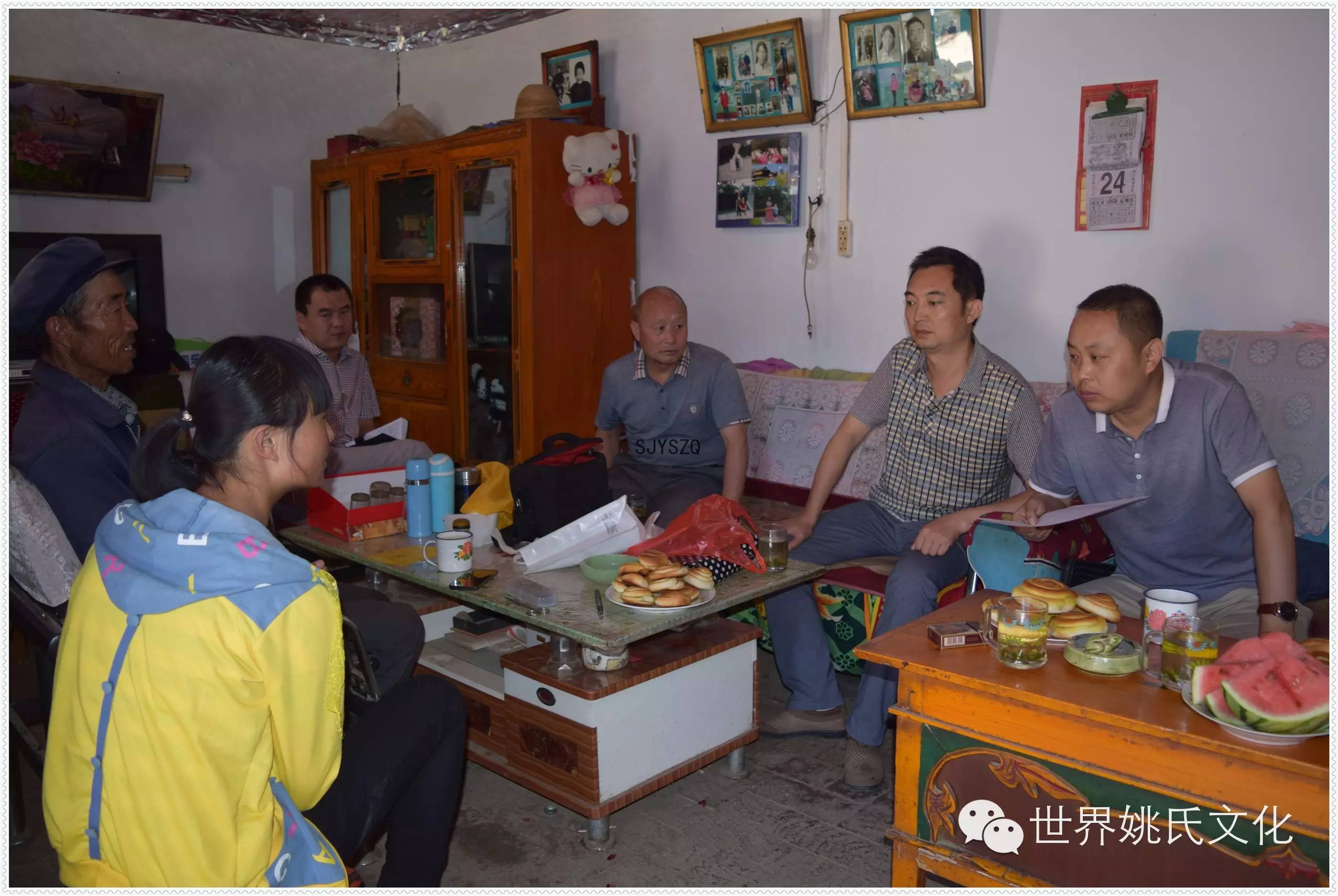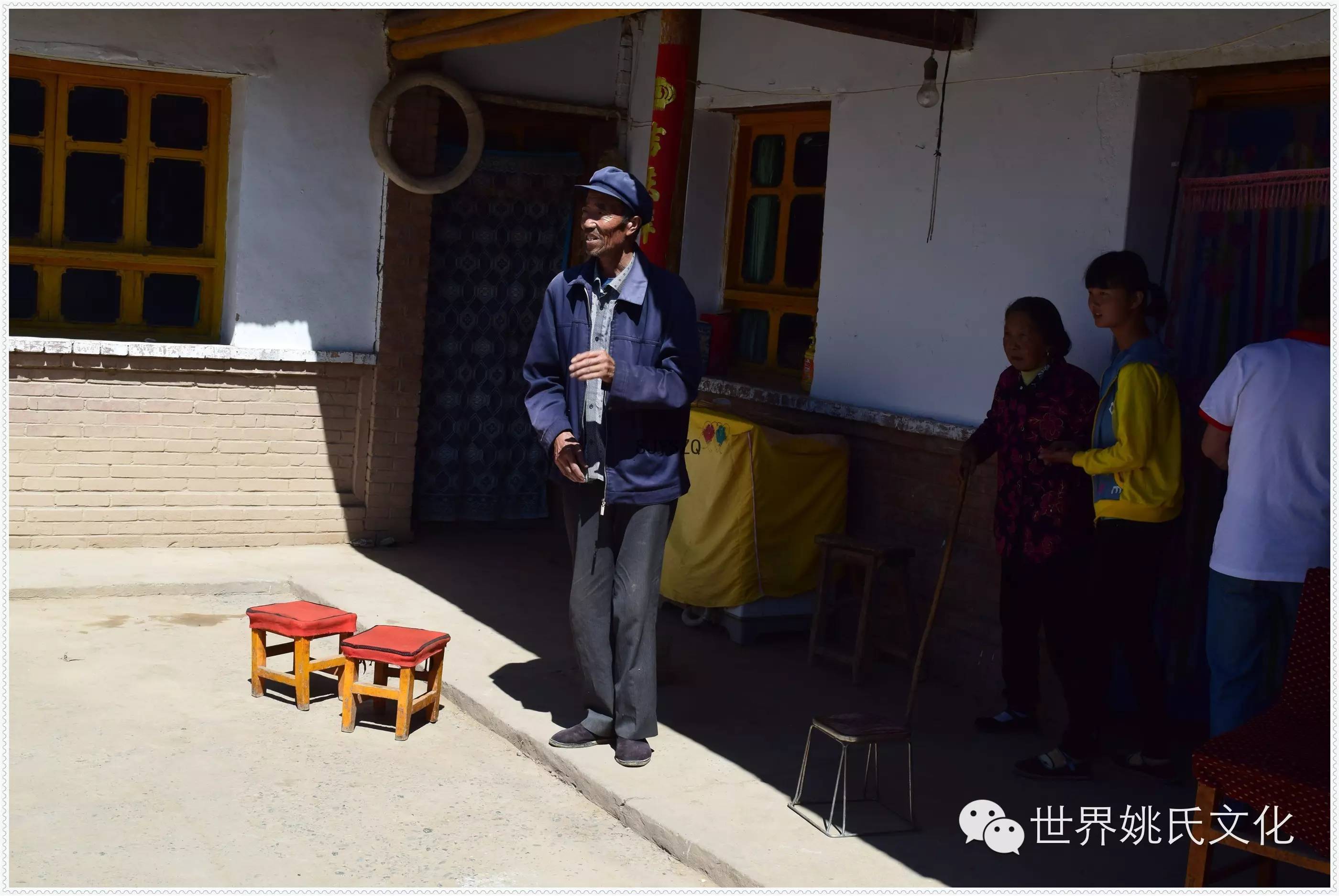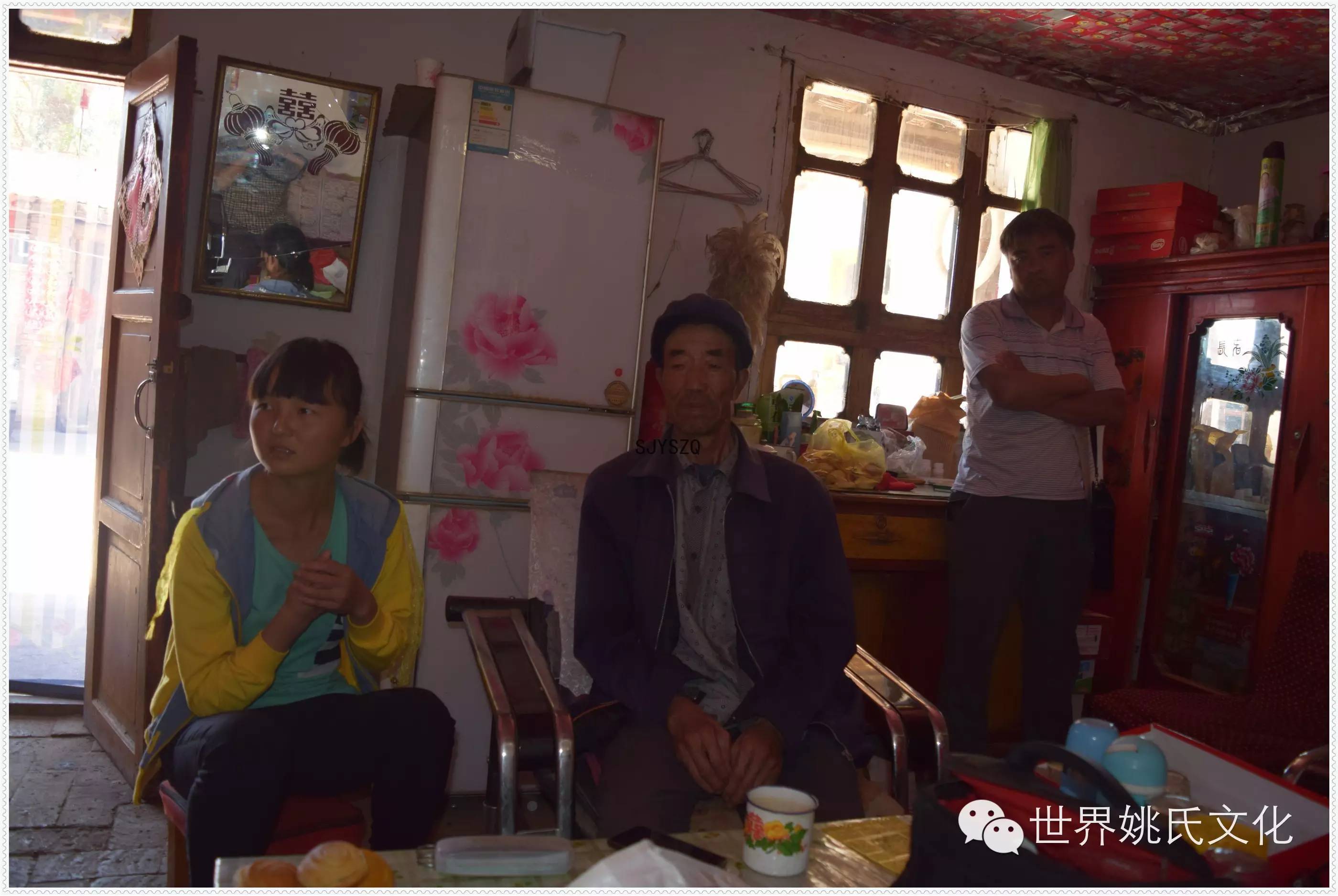 七十多岁的姚天国老人从地里赶到家里很是激动,深情的谈到这么多年的生产生活状况,年迈的身体和微薄的收入,姚芙蓉小姑娘很是懂事,通过刻苦学习得以考上陕师大是姚家的荣耀!姚天国讲到他们这里叫王家村,由东姚家庄子和西姚家庄子组成,将近有姚姓宗亲三百人,老祖来自距他们不远的花园村,那儿至今多数姚姓,临近的新天乡上姚村和下姚村也大部分姓姚!祖影和族谱在破四旧时焚毁,现在只知道字辈:万、作、天、兴、正!现在天字辈都是老人。兴和正多些,村里年轻人一般都不了解这些东西,更谈不上文化研究!由于时间关系,我们无法多谈,留下联系电话回到民乐县上吃饭!