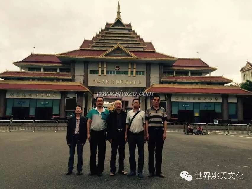 7月24日上午,四川宗亲姚正学、姚正柱和云南富源县宗亲姚太强、姚廷芳前往瑞丽与姚承坤宗亲会面,湖南宗亲姚炳松、姚希明和贵州宗亲姚绍钰因有事不能耽误,就于当天下午乘车返昆明。当天下午,姚承坤宗亲一家人热情接待了姚正柱他们一行四人,并邀请在瑞丽经商的重庆宗亲姚云勇与其叔叔相聚。餐后,姚承坤宗亲将其收集的云南腾冲、保山、施甸、楚雄、普洱姚氏族谱供他们查阅、研究,姚承坤的入滇先祖是明初洪武年间来自合肥的姚陶(沐英部属,被授武略将军)。在送他们回宾馆的路上,姚承坤宗亲又带他们走访了在瑞丽顺通物流城经营“宾川饭店”的大理宾川人姚家勇母子。次日,姚承坤宗亲带他们游览了姐告国门和瑞江广场等,中午与重庆宗亲姚云勇家人相聚。下午,姚承坤宗亲带着他们与在瑞丽经商的江西籍姚国龙进行了座谈交流,并将他们送到返昆明的班车上。