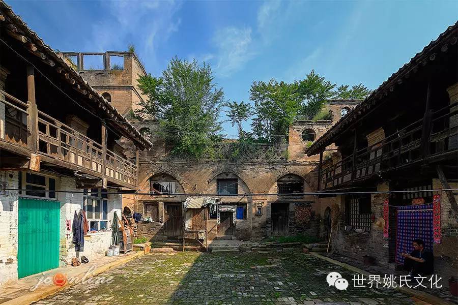 “高楼院”位于村西北,其大门为石砌木构式建筑,门檐下挂有“恩荣古稀”四字的大木匾,为清嘉庆八年由皇恩钦赐姚氏正九品官职所题写。木匾下有“敦厚崇礼”四个石刻楷字,大门内为院落通道,迎面是刻有“忍”字的砖雕照壁。院内北面正房建筑极为奇特,下面为三间拱圈式窑洞,上为绣花楼,东北角为三层阁楼,西北角为四层高楼。