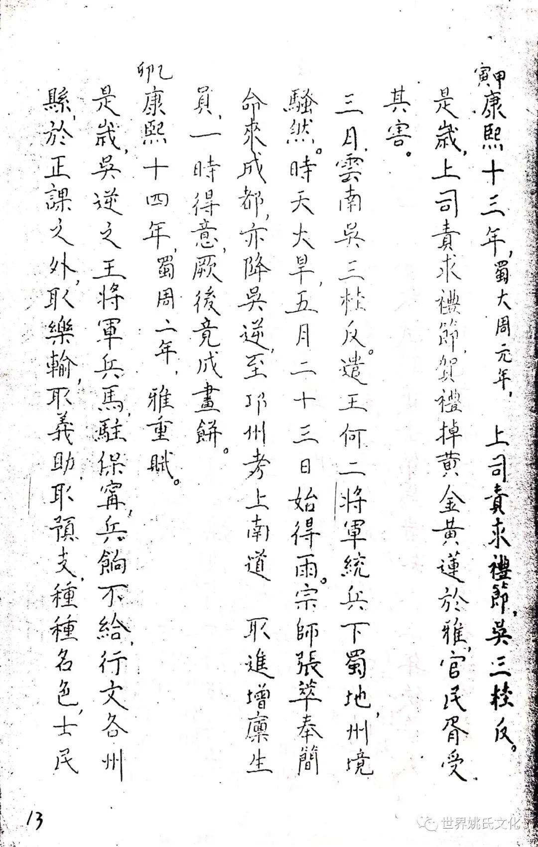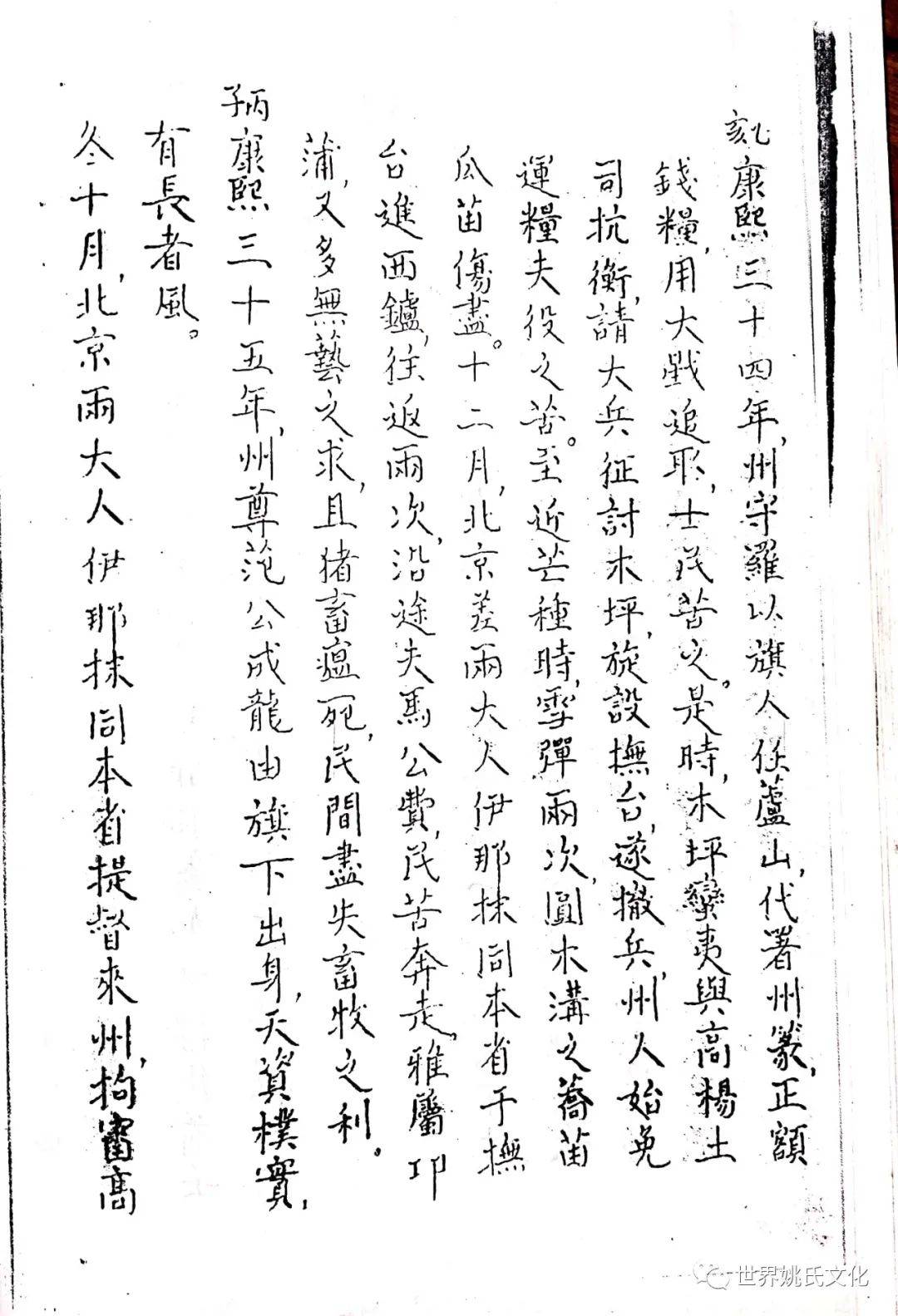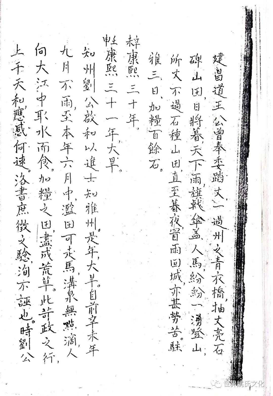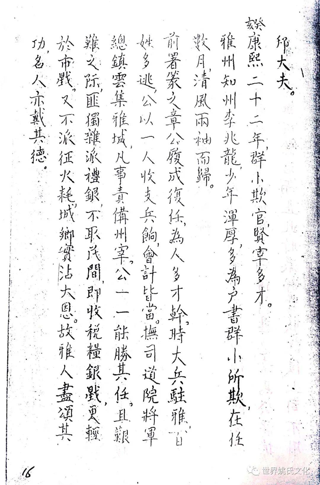清圣祖即位,始覩(睹)承平,復返孝廉故里,享年大耊,以韦布终。尝取生平亲历浩劫,次第实录,编其年,纪其月,凡关于雅者,详书之,自崇祯元年起,至康熙四十年止,纂成一册,名曰《遇难记》。藏之箧中,俾后世子孙披读之,如见若宗蒙难艰贞之苦,或不致骄奢淫佚,数典而忘也。迄今年晋三百,云礽繁衍,多至四百余家,一线之延,瓜緜堪詠,皇天祐德,岂不然乎!慈逢县志创修之盛,征求文献,廉恭楷原本出示。