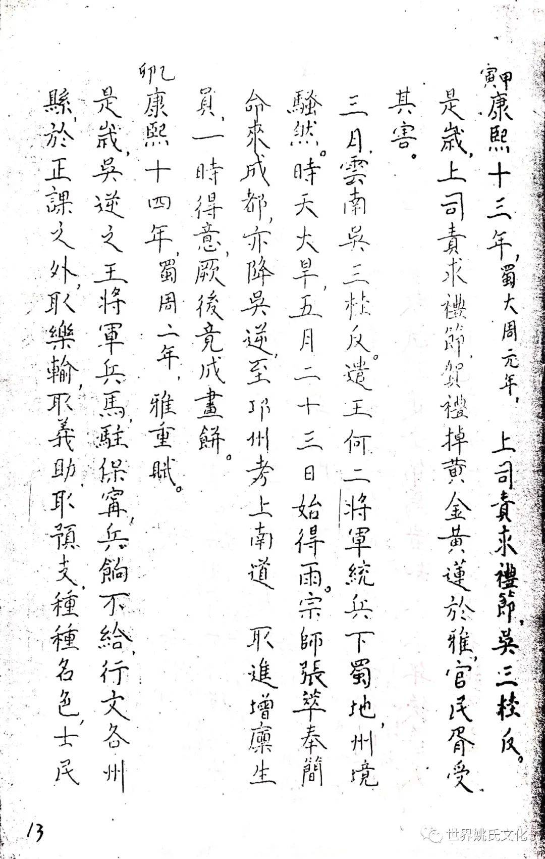 姚氏家族六世祖姚邦才时期,正值明末清初的变更,川中争战不息。据姚氏族谱记载,明崇祯十三年,张献忠入川,各地流寇作乱,祸延上川南之雅州,雅人受害极深,民无宁日,形成数十年之浩劫。