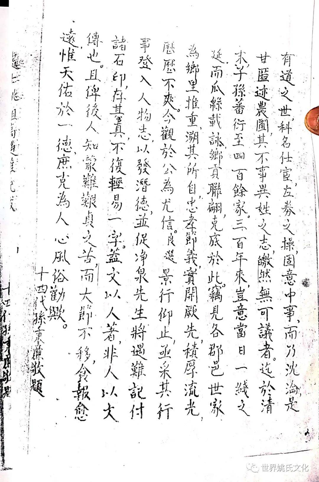 嗟夫,公固明代士族也,蜀祸平,公犹盛年,苟出其所学,自见于有道之世,科名仕宦,左券之操,固意中事,而乃沈论,是甘匿迹农圃,其不事异姓之志,皦然无可议者,迄于清木,子孙蕃衍四百余家,三百年来,豈意当日一线之延,而瓜緜载詠,乡贡联翩,克底于此。