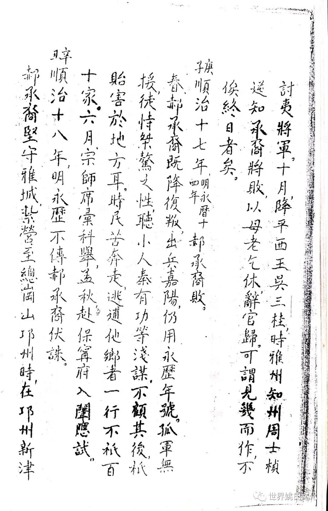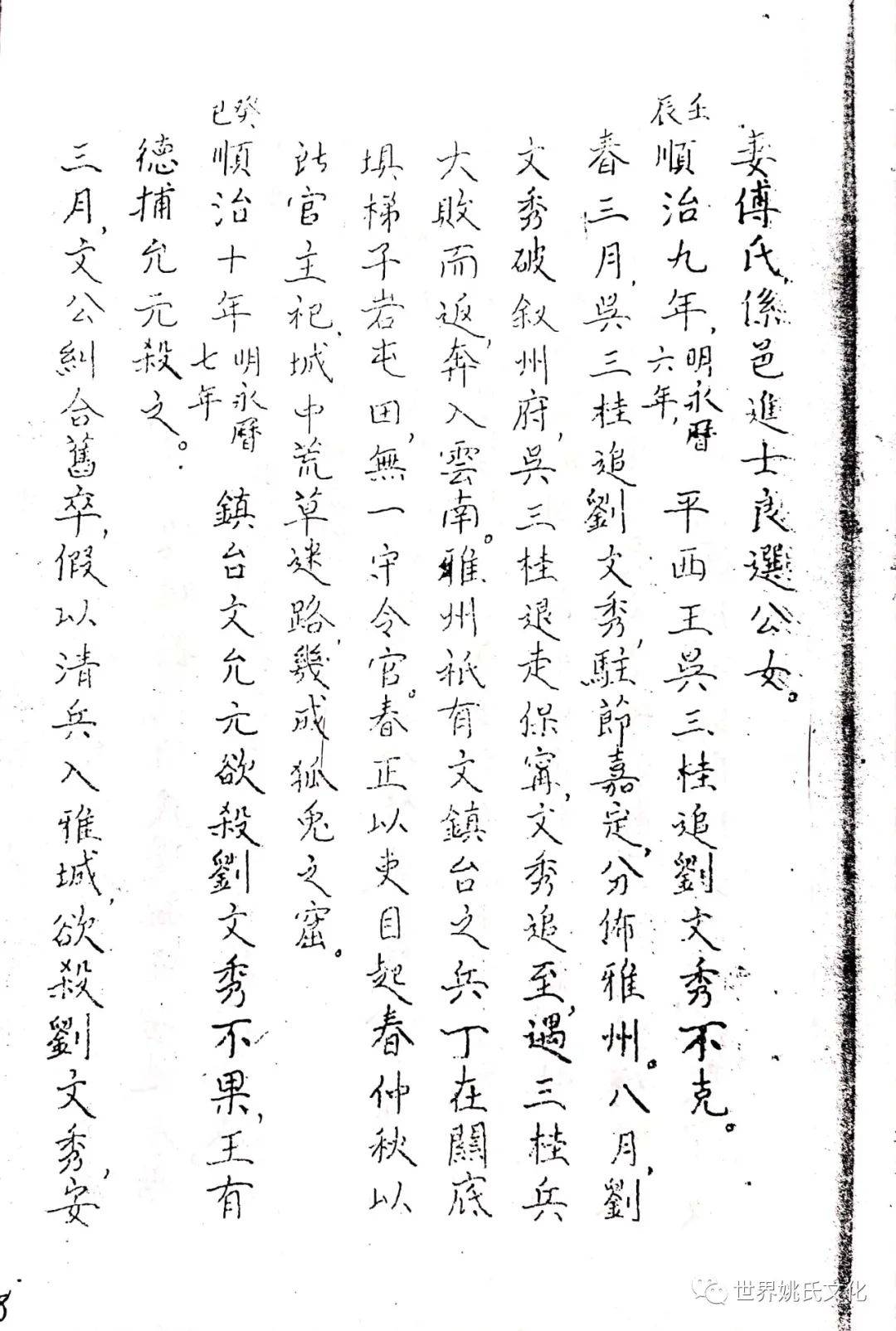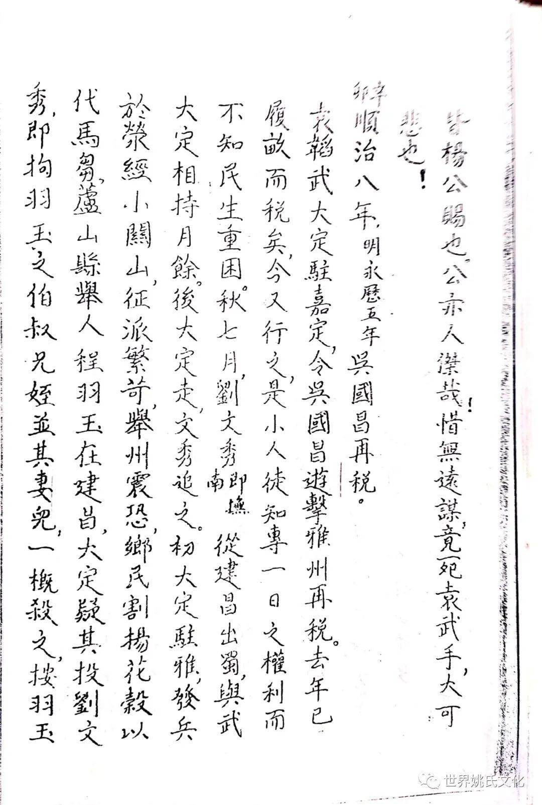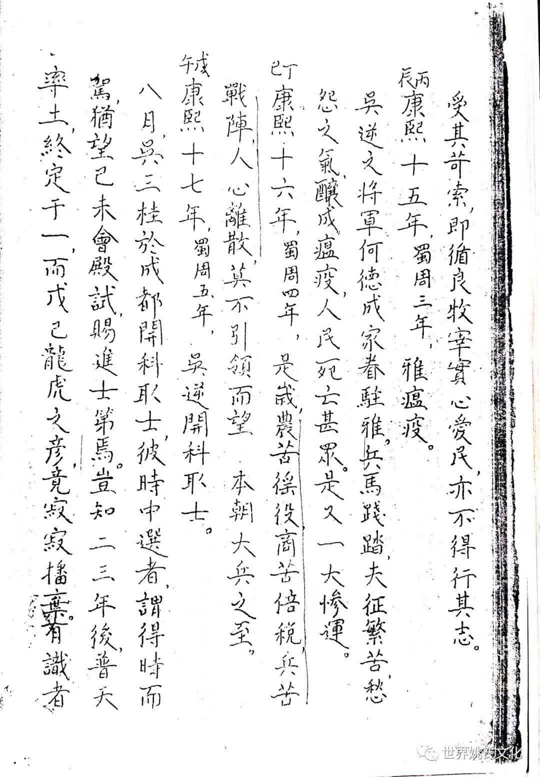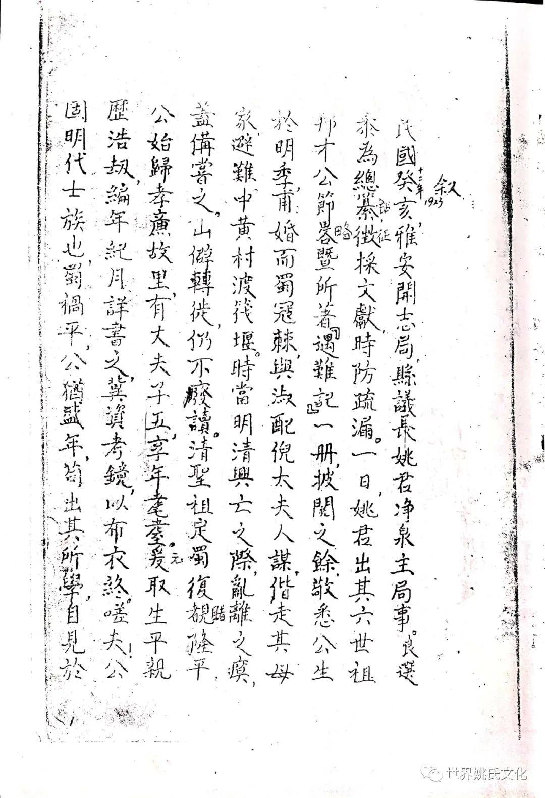 民国癸亥(1913),雅安开志局,县议长姚君净泉主局事。良选黍为总纂征採文献,时防疏漏。一日,姚君出其六世祖邦才公节略暨所著《遇难记》一册,披阅之余,敬悉公生于明季,甫婚而蜀冦辣,与淑配倪太夫人谋,偕走其母家,避难中黄村渡筏堰。时当明清兴亡之际,乱离之瘼,蓋備甞之,山僻转徙,仍不废读。清圣祖定蜀复覩(睹)隆平,公始归孝廉故里,有大夫子五,享年耄耋,爰取生平亲历浩劫,编年纪月详书之,冀资考镜,以布衣终。