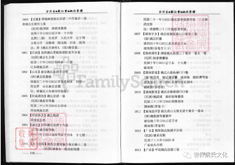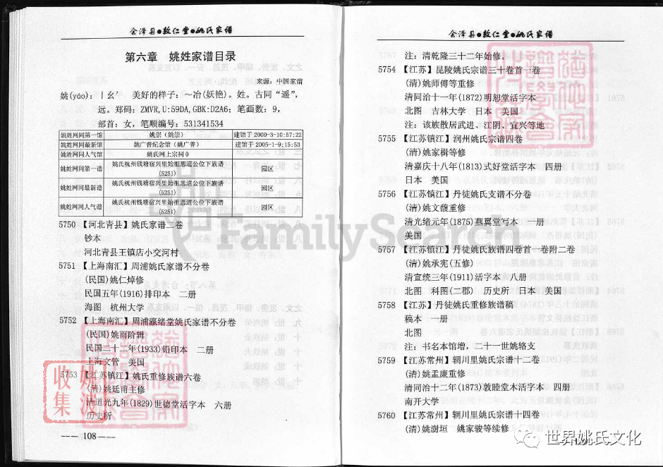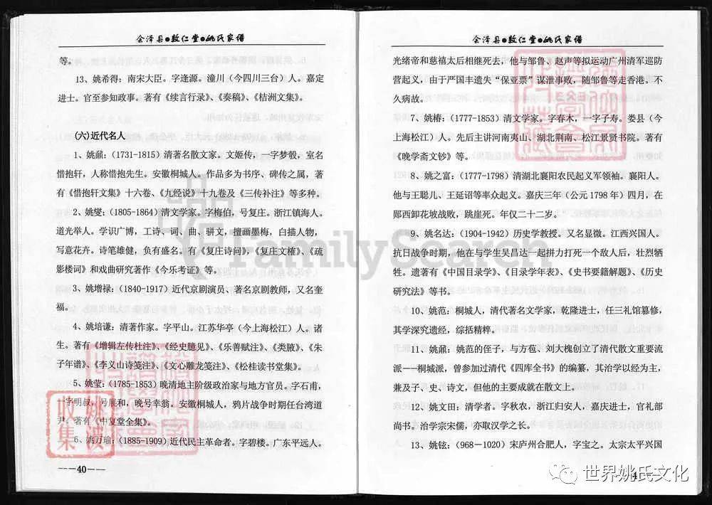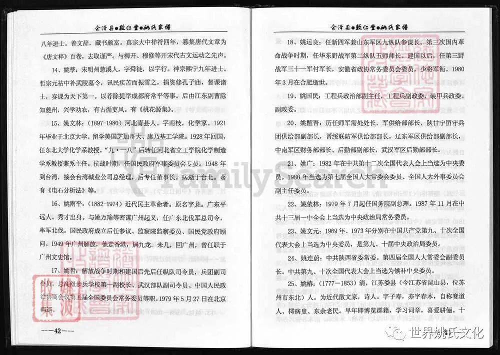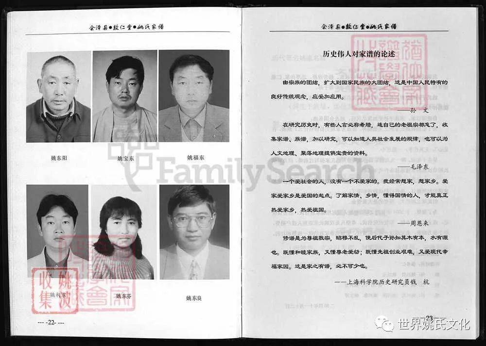 原書: [出版地不詳] : 敦仁堂姚氏家譜編委會, 公元2005年修. 合1冊 : 插圖, 世系表, 肖像.