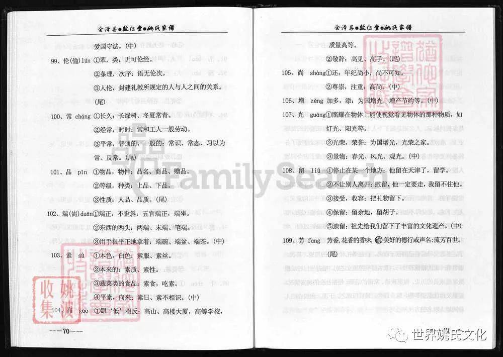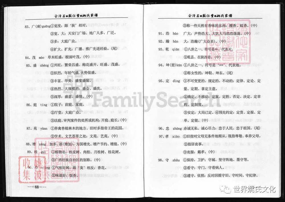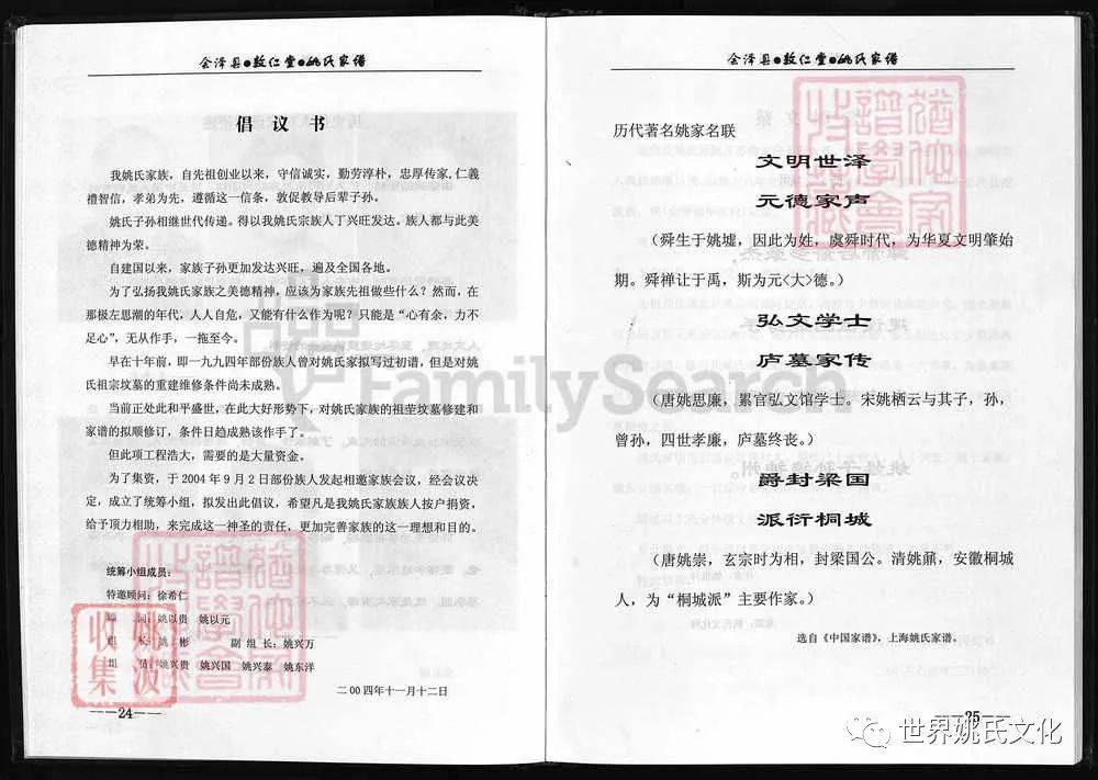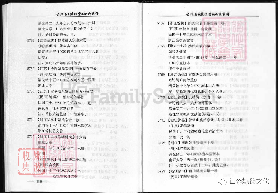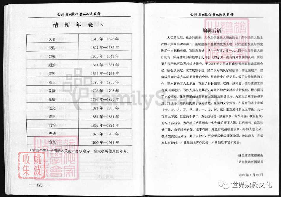 原書: [出版地不詳] : 敦仁堂姚氏家譜編委會, 公元2005年修. 合1冊 : 插圖, 世系表, 肖像.