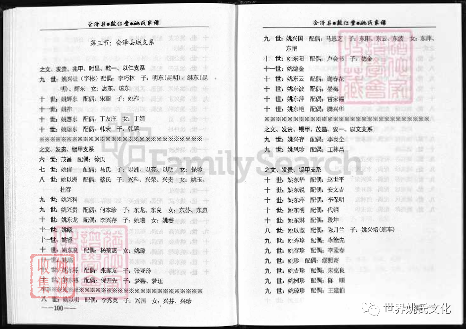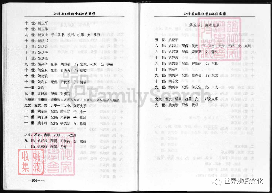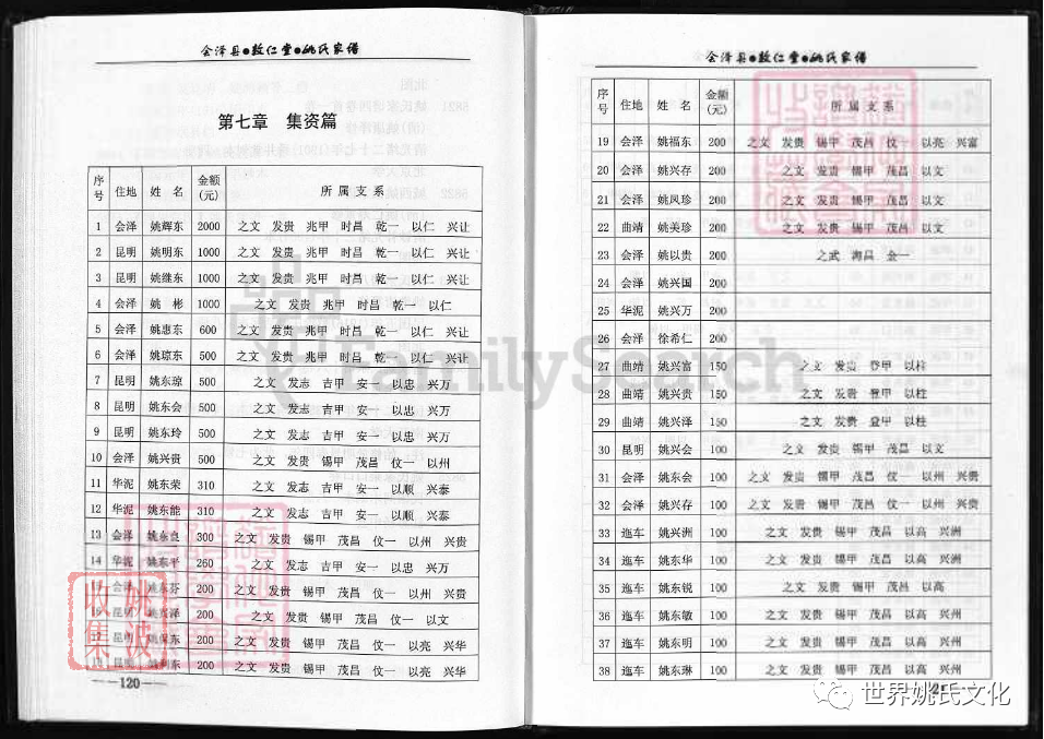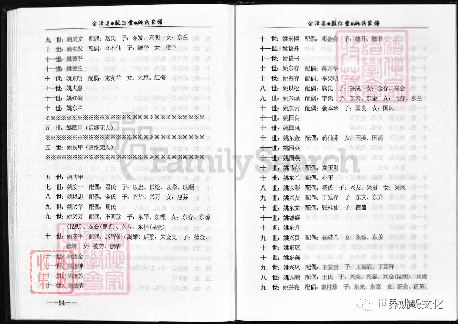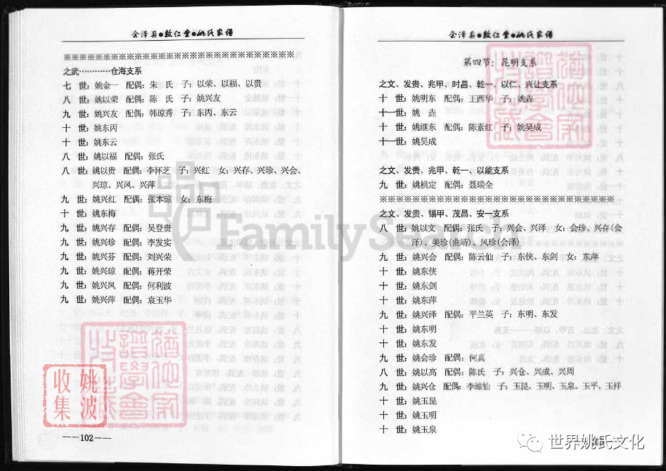 兆甲公下遷昆明祖 : (9世) 姚桃定 ; (10世) 姚明東.