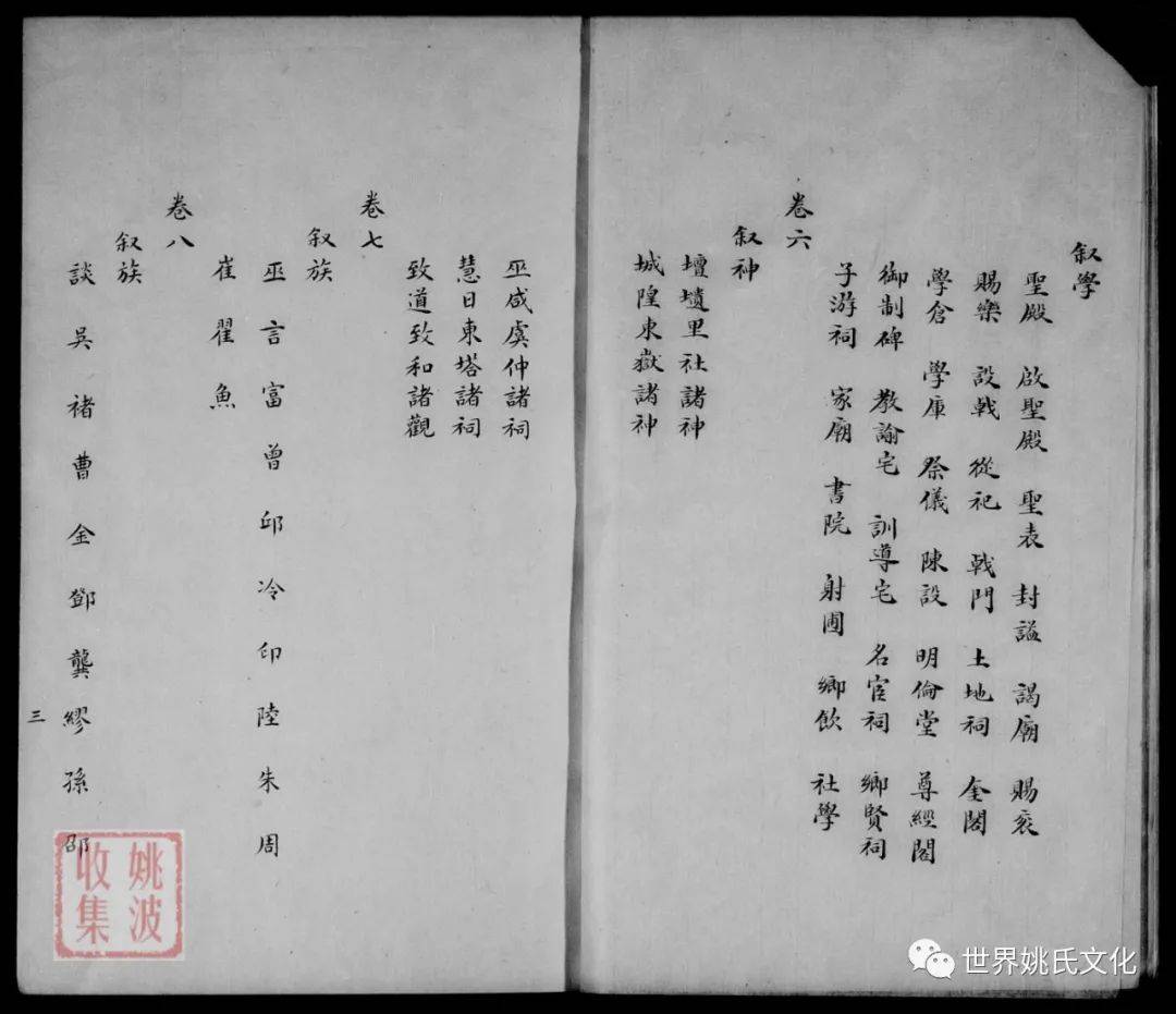 (明)姚宗仪撰 万历45年(1617)稿本,明抄本,清抄本;民国抄本。宗仪,字风来,号来父、布衣,邑人。其先代留心地方文献,“家世搜辑,筐箧纷如”(龚立本《序》语),至宗仪又“博取群籍,合为一书”(《凡例》)。由于南宋以来,府县志书,大都出于官修,而此志为个人撰纂,所以定名“私志”。