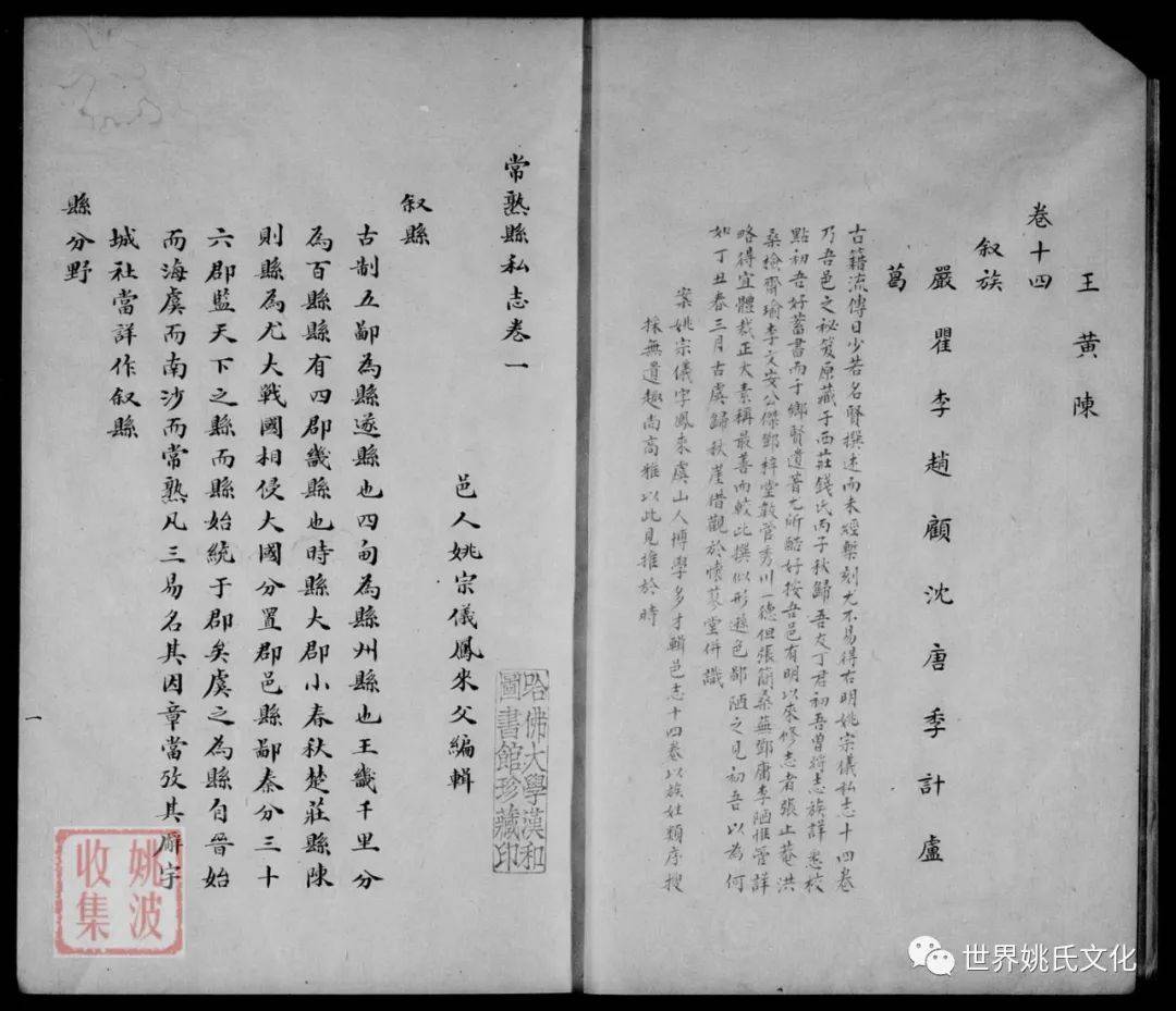姚宗仪《常熟县私志稿:14卷》 万历45年(1617)稿本