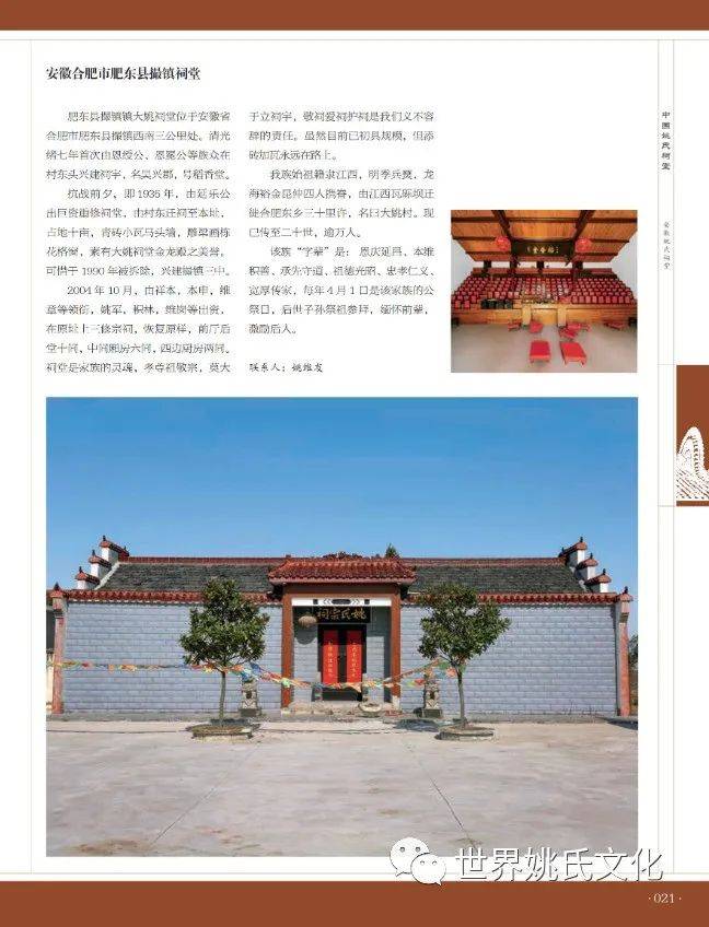我族始祖籍隶江西,明季兵燹,龙海裕金昆仲四人携眷,由江西瓦砾坝迁徙合肥东乡三十里许,名曰大姚村。现已传至二十世,逾万人。