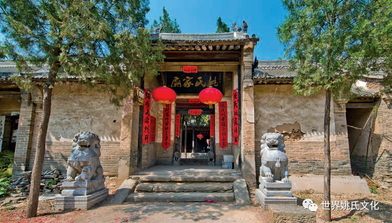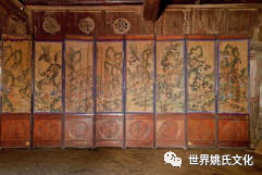 上世纪 80 年代,族人对家庙进行抢救式修复,家庙才旧貌换新颜。家庙有两副木联:其一书“传帝法绍帝统世著唐朝”;另一书“为帝为王为卿相家留吴兴,迁硖迁洛迁平阳派衍河朔”,横批是“吴兴世家”,还有一块木制匾额上书“沿河居访”,后失落。家庙内存八扇屏风,古色古香,上画琴、棋、书、画、渔、牧、樵、耕等内容,历经战乱、土改、文革等浩劫,是老族长姚胫州冒风险保存下来,后其女姚葡萄交于祠堂。现增添二十四孝图等书画内容。