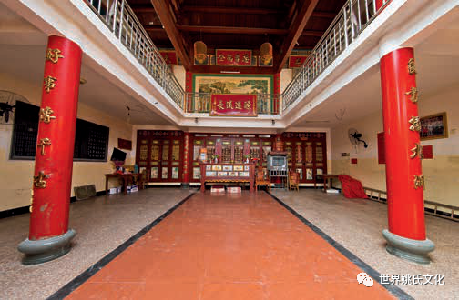 姚氏宗祠坐南向北,为水泥、砖、石、木结构的二层建筑。建筑面积 264 平方米,祠埕 120 平方米,祠堂正面上部为红砖墙,楼线之上开窗。祠堂大厅铺上大理石,中有天井。祠堂内张挂“姚氏家训”及各种匾额。大厅后建有神主龛,供奉玉峰姚氏始祖世晟公遗像。世晟公为唐进士天明公九世孙。