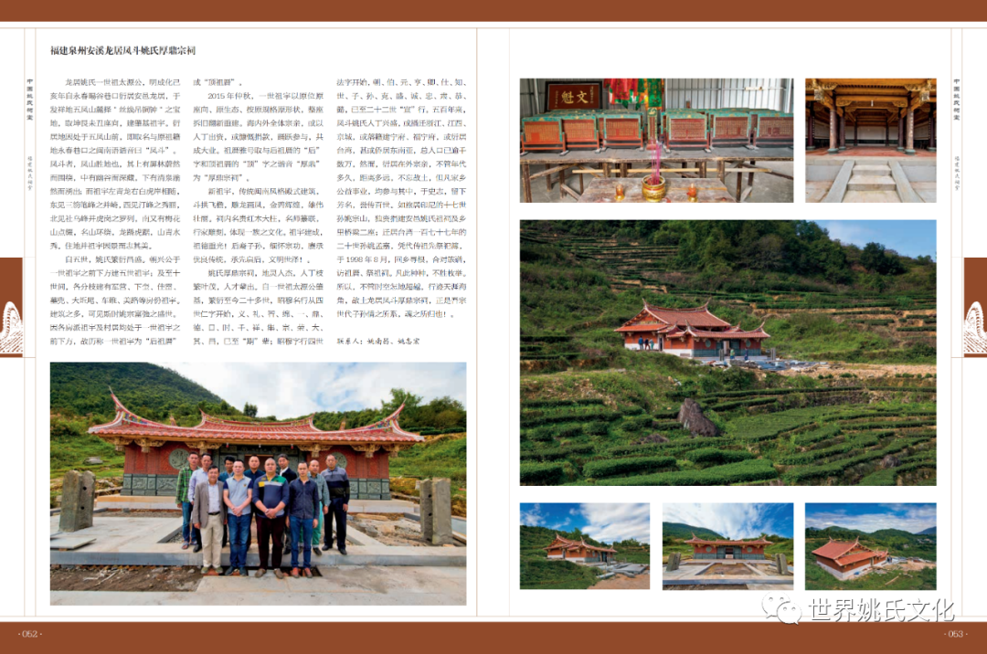 五百年来,凤斗姚氏人丁兴盛,或播迁浙江、江西、京城,或落籍建宁府、福宁府,或衍居台湾,甚或侨居东南亚,总人口已逾千数万。然而,衍居在外宗亲,不管年代多久,距离多远,不忘故土,但凡家乡公益事业,均参与其中,于史志,留下芳名,誉传百世。如旅居印尼的十七世孙姚宗山,独资捐建安邑姚氏祖祠及乡里桥梁二座;迁居台湾一百七十七年的二十世孙姚孟嘉,凭代传祖先祭祀簿,于 1998 年 8 月,回乡寻根,合对族谱,访祖厝、祭祖祠。凡此种种,不胜枚举。所以,不管时空怎地超越,行迹天涯海角,故土龙居凤斗厚鼎宗祠,正是吾宗世代子孙情之所系,魂之所归也!。