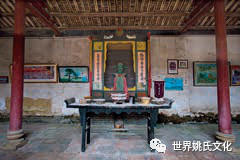 大门匾额上方绘有壁画《三星耍乐图》,描绘的是福星、禄星、寿星齐聚一堂的欢乐景象,象征幸福美满、大吉大利。《三星耍乐图》左右各有一副“为善”“做人” 题字和《伏女传经》《五谷丰登》《鹿位高升》《连登鼎甲》等壁画,由李鉴泉绘。书法别具一格,壁画饶有意趣。姚氏宗祠前有一个宽阔的水泥广场,人们会在这儿打球、晒谷、跳舞,停车,据说这个广场以前是一个很大的风水塘。