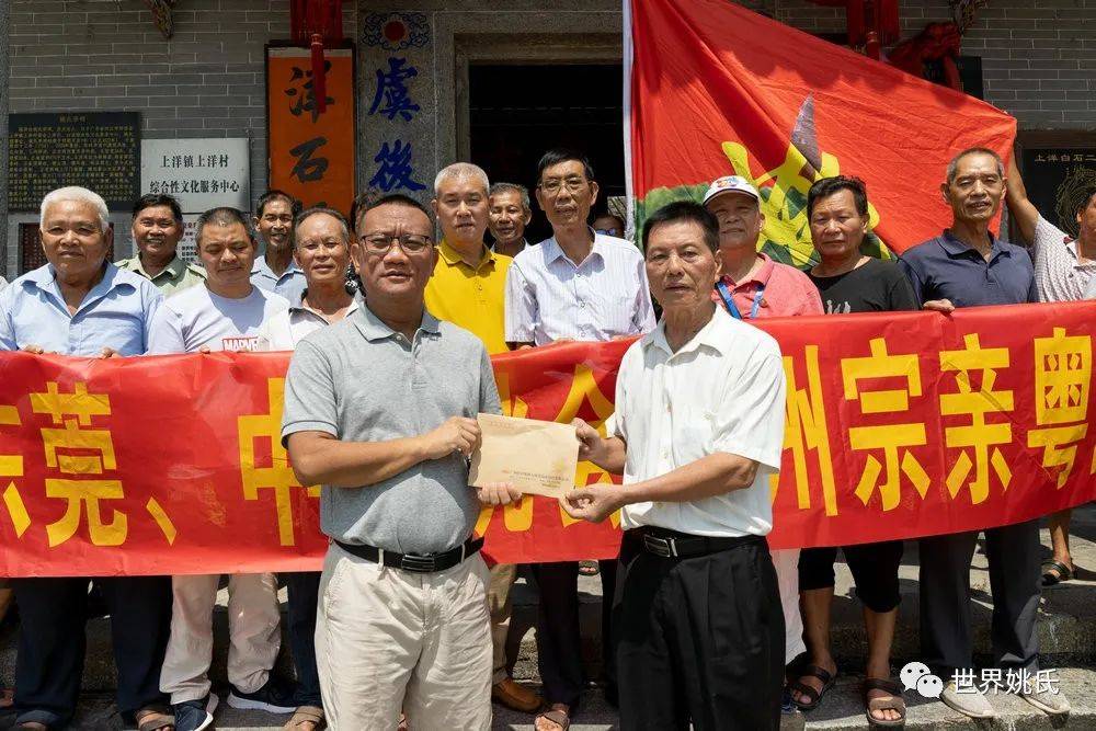 姚华森宗亲向姚华冰会长捐赠了教育助学金