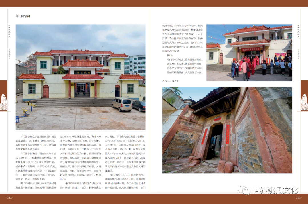 斗门团宗祠堂号“鬷假堂”,典出《诗经・商颂・烈祖》,意为:祈祷奏告上天、先祖。斗门姚氏始祖姚澄(字源清,公元 1230-1307 年)于宋淳祐八年(公元 1248 年)从姚湾入赘斗门佘氏,至今近八百年,繁衍 31 世。虽然本村姚姓人口仅 2000 多人,但南昌姚氏十六届入谱的八团十一族中就有六团八族是澄公后裔。外迁二十七分支和修谱已确认的南昌姚氏外迁宗亲也大多是从斗门迁出的。斗门村辖斗门、斗山两个自然村,即南昌姚氏斗门团和斗山团,是南昌地区最大的姚姓村落。今日斗门村土地全部开发建设,成为南昌县城中村,出门就是街道,公交车直达省会南昌,村民都享受失地农民养老保险,村委会还出资为全体村民购买了“新农合”,六十岁以上老人除国家发放养老金外,村委会还每人每月补助二百元。我们斗门村是全县闻名的富裕村,斗门村民是全县待遇最高的农民。![]()
