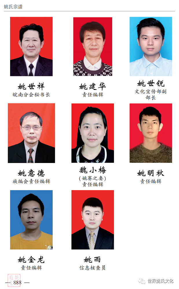 《姚氏宗谱》的编印成功,是全体族亲协力同心的产物,同时也是所有参与者精诚合作的结晶。对于大家的鼎力支持,我们表示衷心的感谢!对随州宏盛广告公司的热心配合,表示诚挚的谢忱!