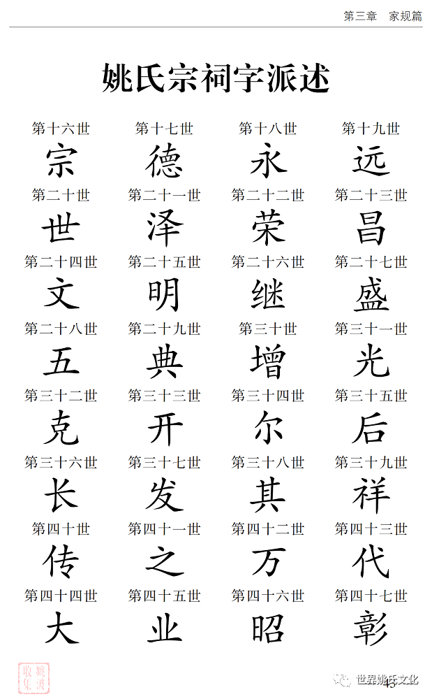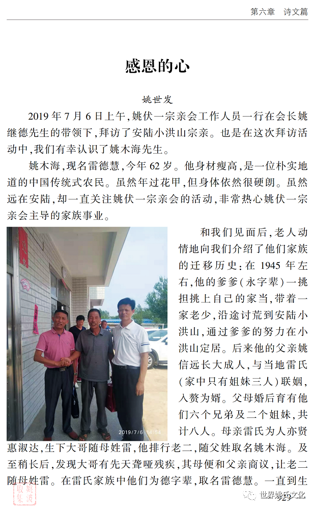 从此以后,我姚氏大家族之子孙繁衍昌盛,不再无族谱可考,无字辈可依。谨为之序?