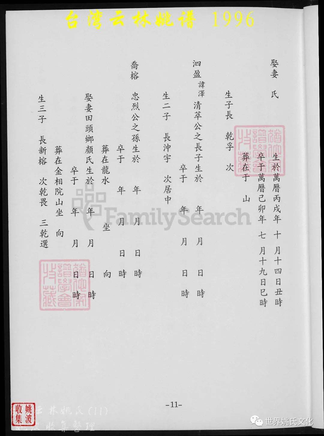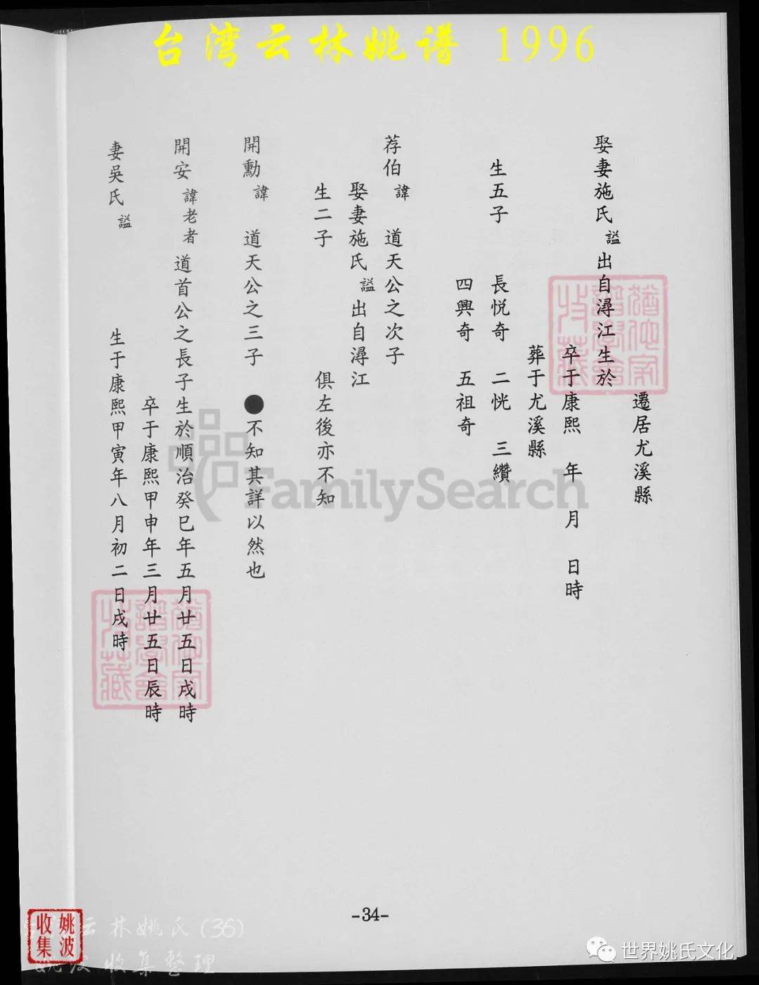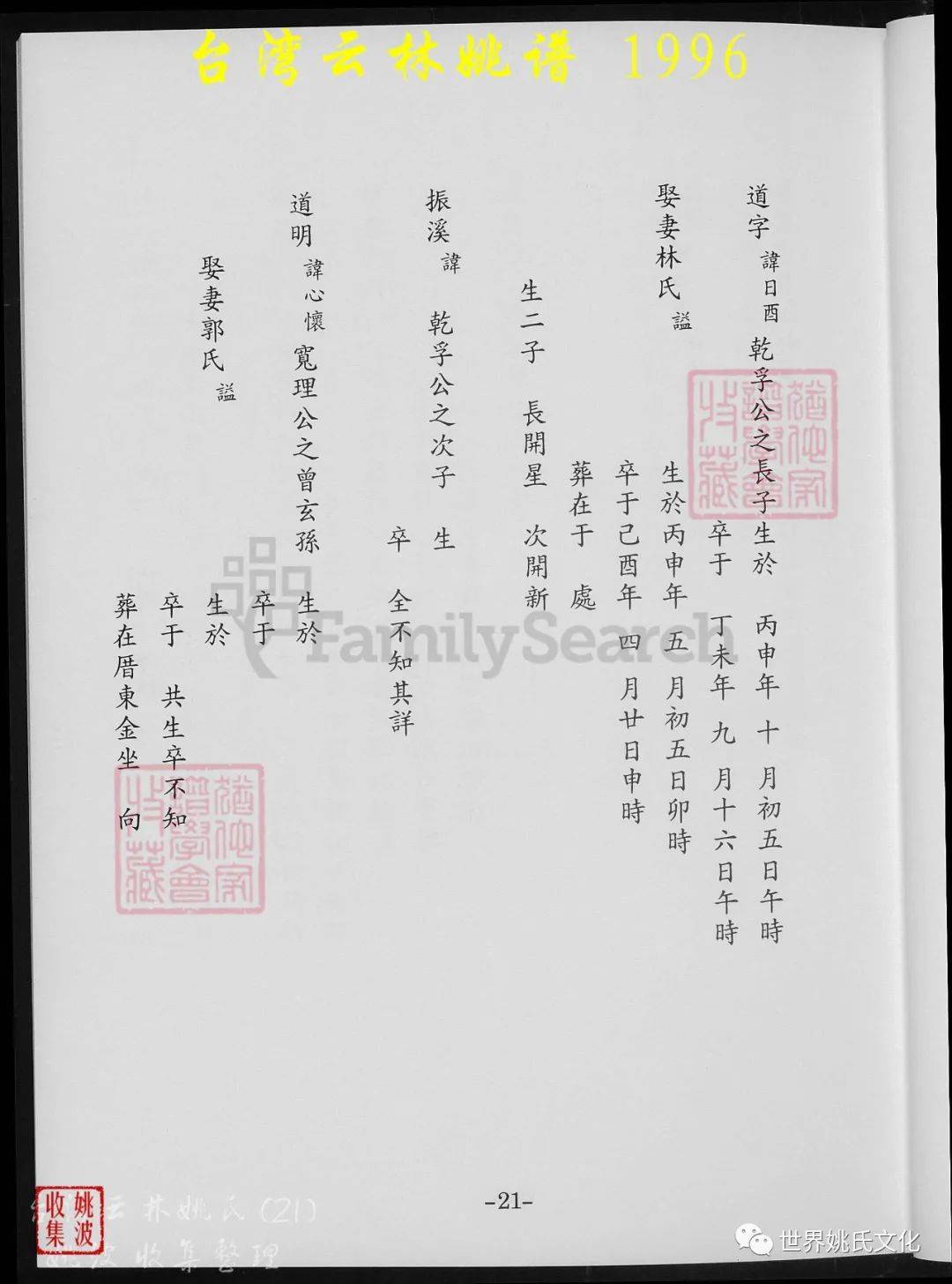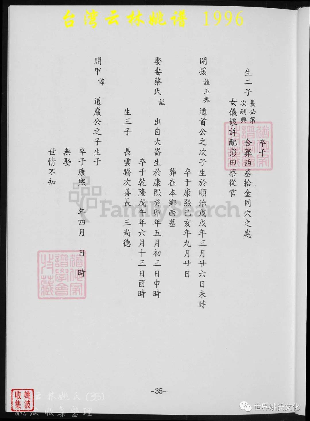 自始祖齐公开枝兴化府蒲田县埔尾徒居晋江县拾柒捌都古盈乡以来分别为一世至今拾五世长二考妣讳名谥号年月日时生卒不明失叙自知是以前人抄历造接不详但以后人君义不能知其事情亦不知根由僅知谱中无分而今道光乙未至丙申年從谱中抄历房分人等而来矣嘻虽知也真难知也但观后世之贤士看上谱中事情不明不可言其抱笔主事之人是以各房分别为人子孙水源木本,不明以致今日谱中考妣讳名谥号年月日时生卒历不明与 义 无干亦是尔之众子孙贤愚不识情理不知过事若有贤人拜请代为修理造接分明此句尔知之乎