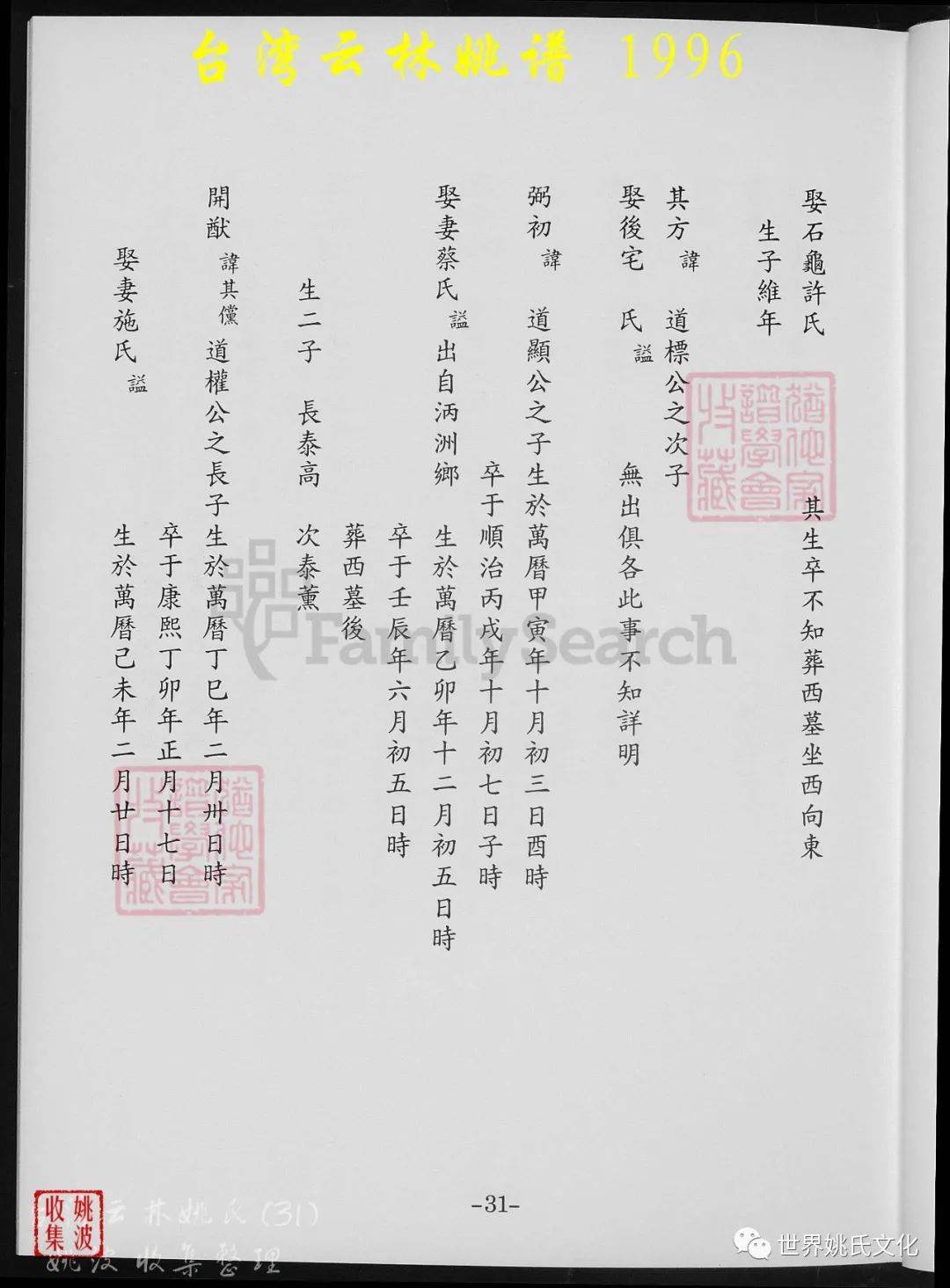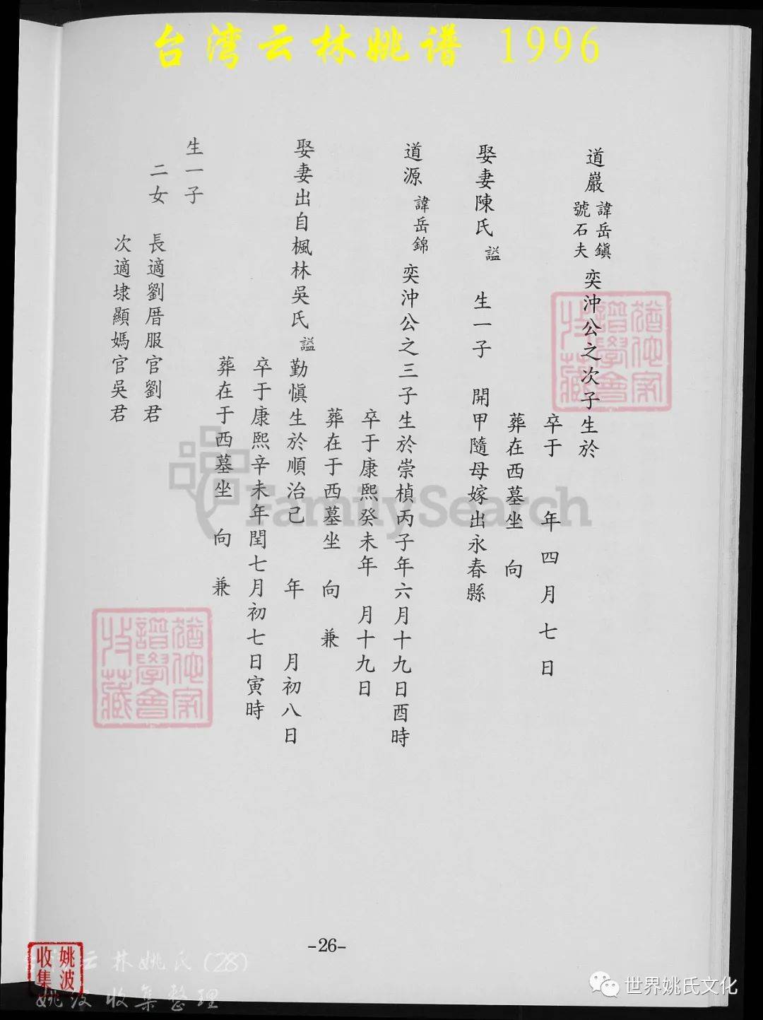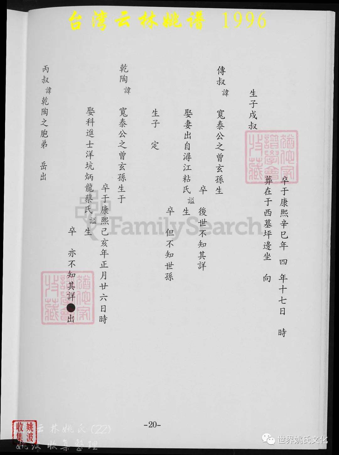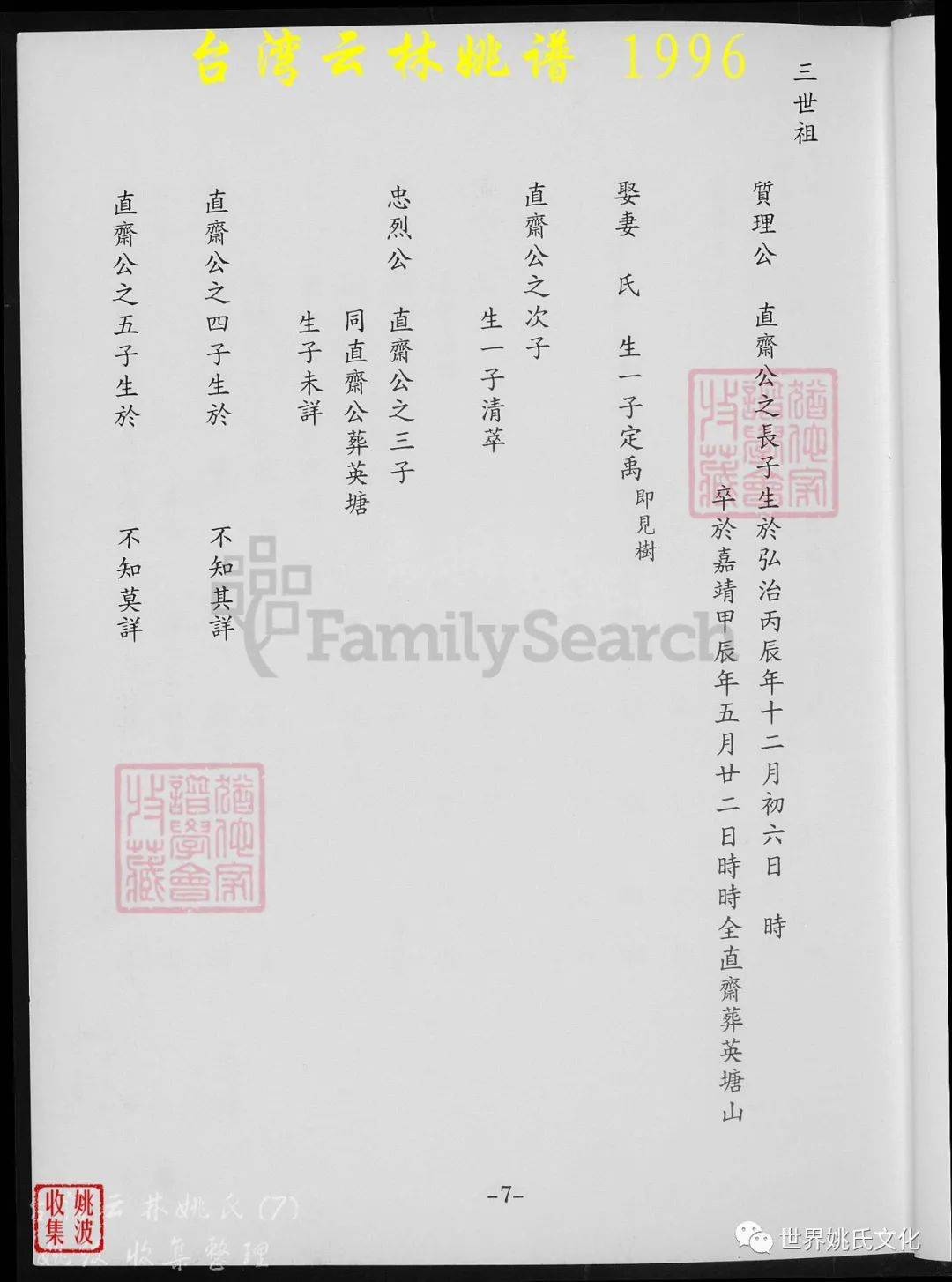 自始祖齐公开枝兴化府蒲田县埔尾徒居晋江县拾柒捌都古盈乡以来分别为一世至今拾五世长二考妣讳名谥号年月日时生卒不明失叙自知是以前人抄历造接不详但以后人君义不能知其事情亦不知根由僅知谱中无分而今道光乙未至丙申年從谱中抄历房分人等而来矣嘻虽知也真难知也但观后世之贤士看上谱中事情不明不可言其抱笔主事之人是以各房分别为人子孙水源木本,不明以致今日谱中考妣讳名谥号年月日时生卒历不明与 义 无干亦是尔之众子孙贤愚不识情理不知过事若有贤人拜请代为修理造接分明此句尔知之乎